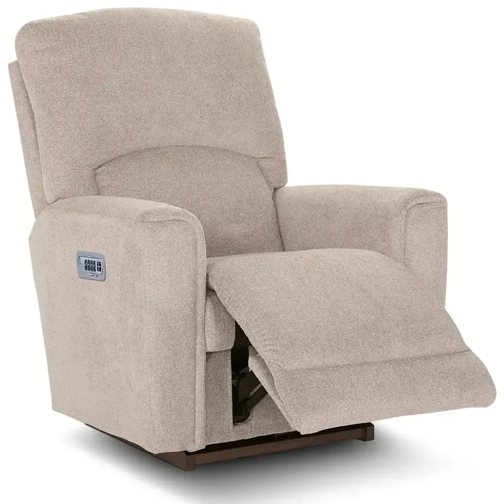 The Cassian Power Rocking Recliner with Headrest and Lumbar is a casual favorite with a refreshed design. Smoothly padded arms border a plush box-border back with an inset lumbar cushion. Controls adjust support head to toe. Or simply rock and relax.