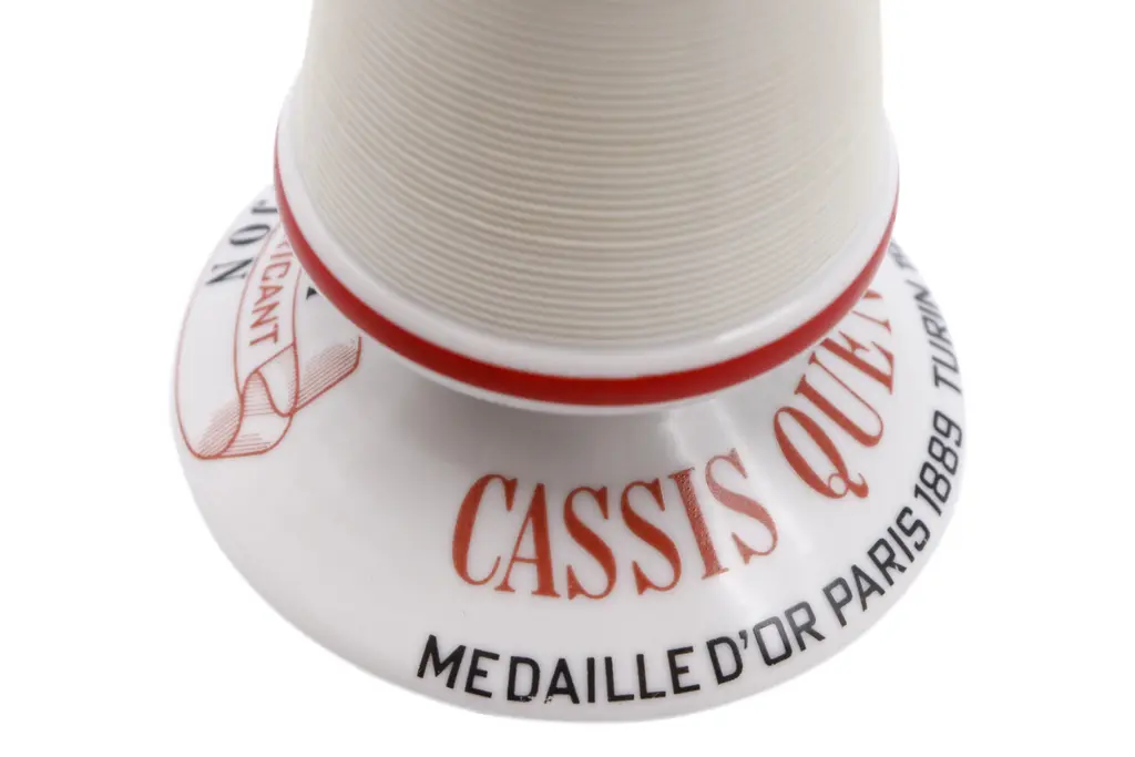 A yellow tinted glass ashtray from The Castaways Hotel, a hotel and casino in Paradise, Las Vegas, Nevada. The center is printed with a green circle branded with the Castaways logo. The hotel was opened in 1963, purchased in 1967 by billionaire Howard Hughes and permanently closed in 1987.