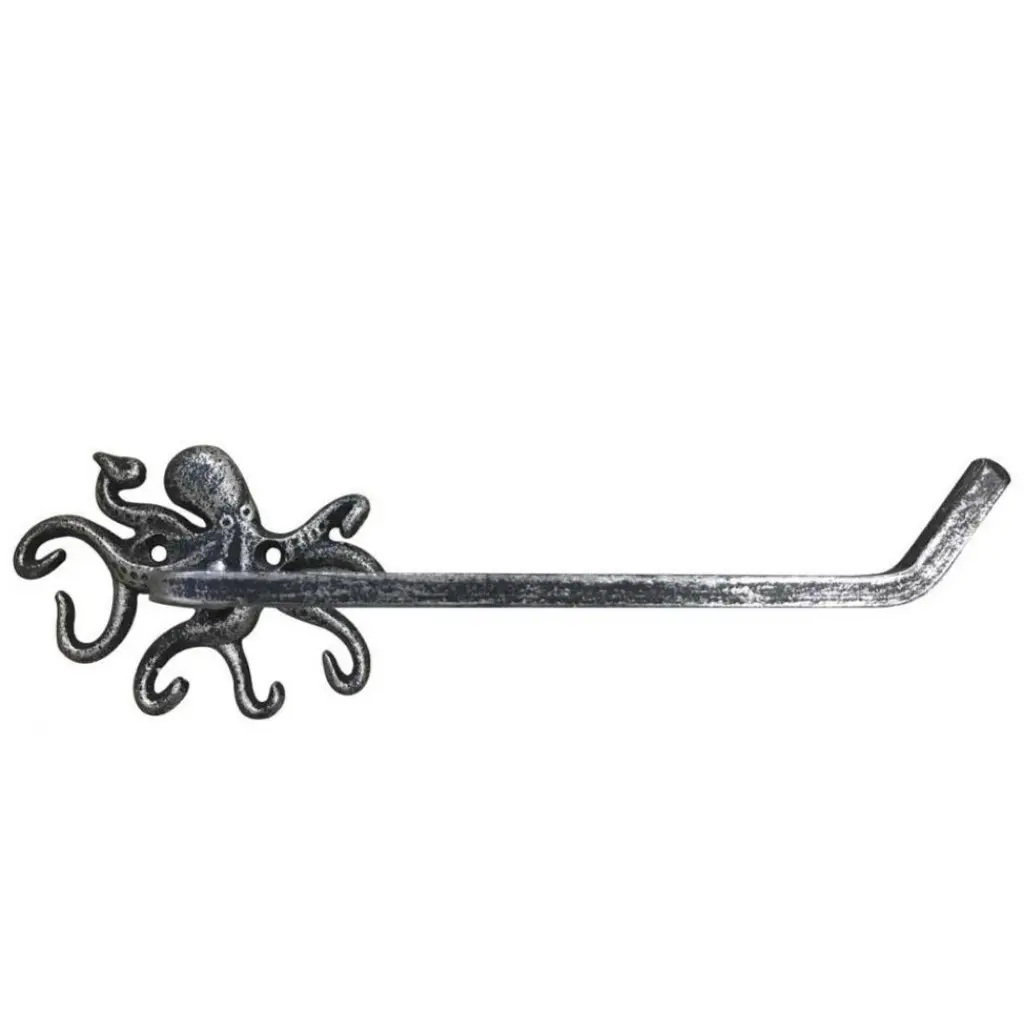Cast Iron Octopus Toilet Paper Holder 11inch - Silver