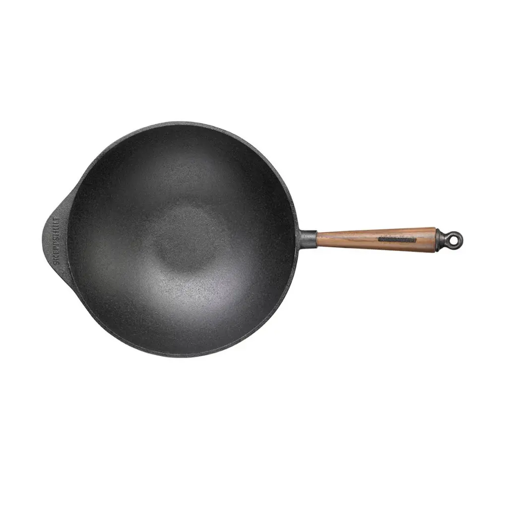 Release flavors from ingredients by using this cast iron wok from Swedish company Skeppshult. Created to make your life easier and your food better, this wok pan is made from cast iron. The .20’’ thick bottom ensures a perfect sear and even cooking. Plus, the bottom is precision milled to always remain flat on the stovetop, even at high temperatures. A cast iron lip serves as a support handle, while the rounded walnut wood handle isolates heat to remain cool on the stove. Conveniently pre-seasoned with organic canola oil, this cast iron wok is naturally non-stick and will only get better with age and use. The Skeppshult 11.8’’ Cast Iron Wok works on all stoves, including induction and gas stoves.