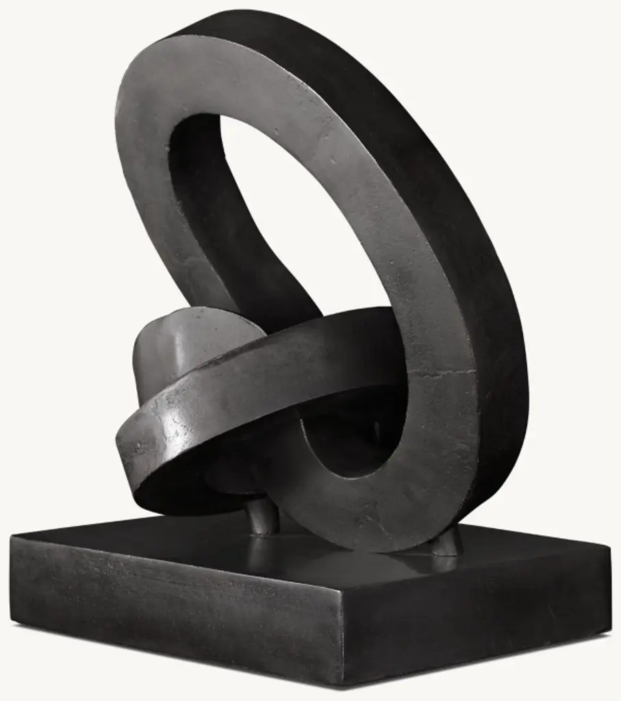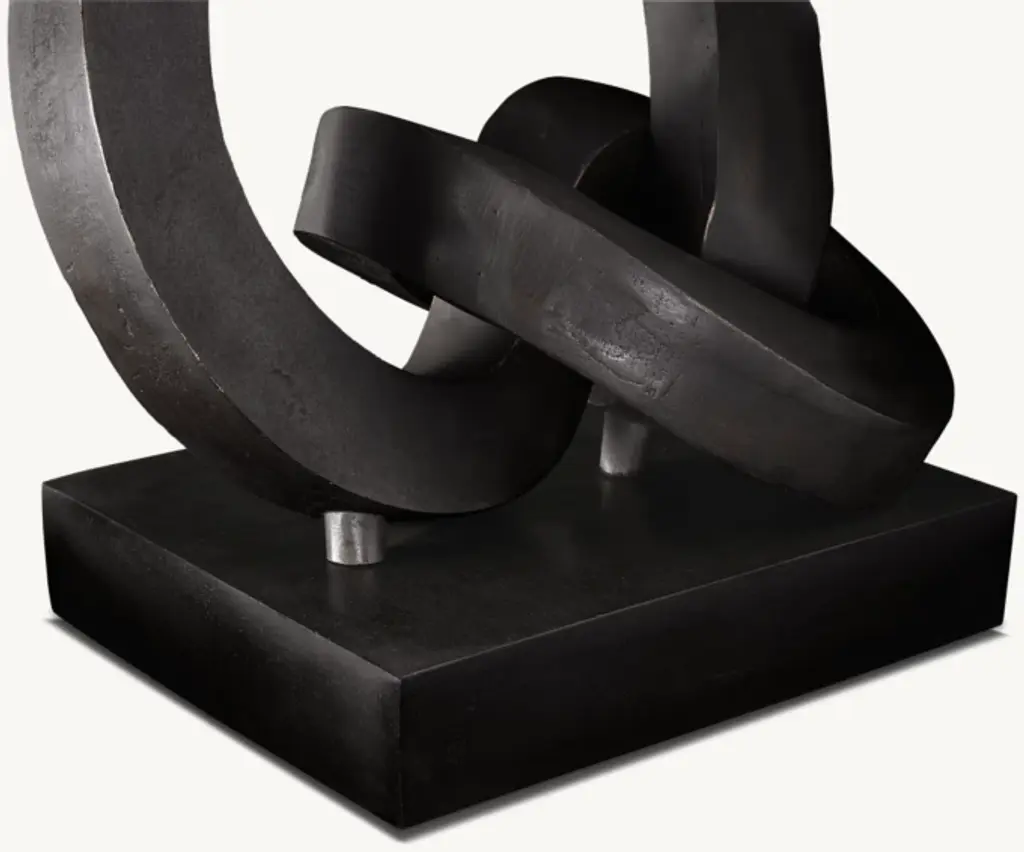 The timeless and contemplative infinity knot takes on a modern form in our abstract bronze sculpture. Crisp-edged, curving lines rise and turn around each other. The bronze finish is baked to achieve both highlights and deep hues, creating rich contrasts in the metallic surface.