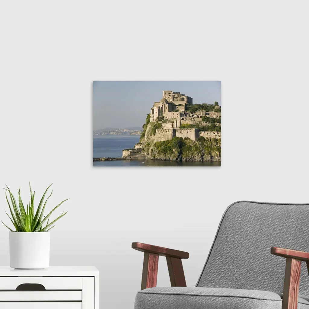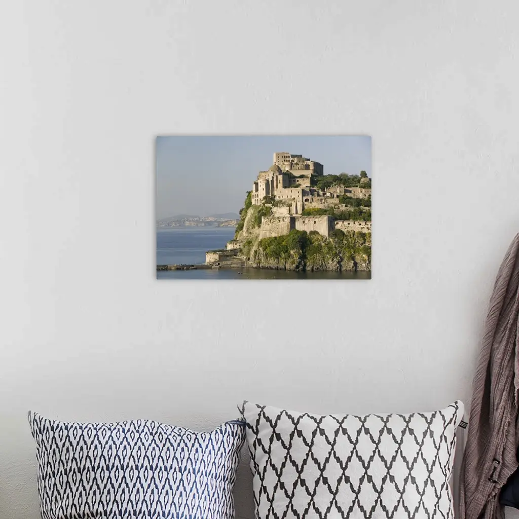 Castle on an island, Castello Aragonese d Ischia, Naples, Campania, Italy wall art for home and office decor. Discover canvas art prints, photos, mural, big canvas art and framed wall art in GreatBigCanvas.com's varied collections.