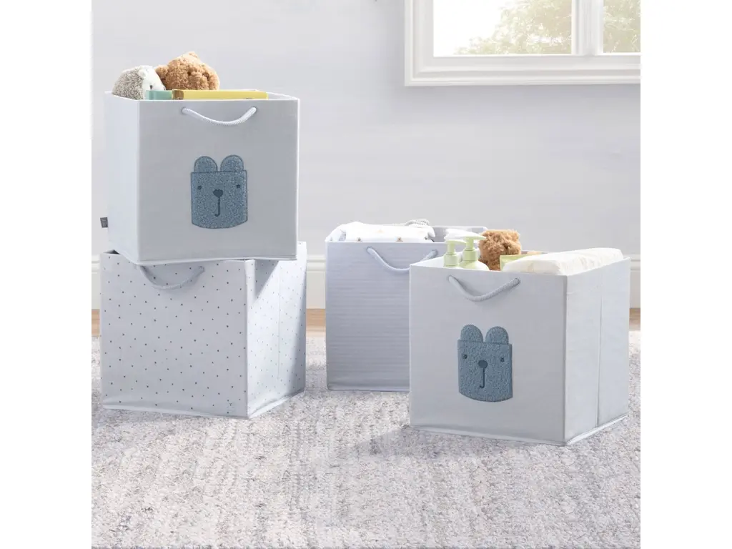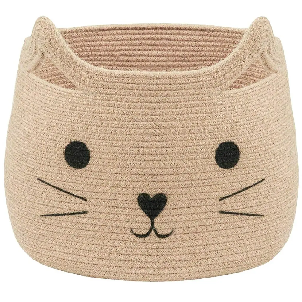 Made of light grey felted wool and adorned with an embroidered face and pointy ears, our cat storage bins are brimming with feline charmand roomy enough to keep books, toys, swaddles and other kids' essentials neatly tucked away.