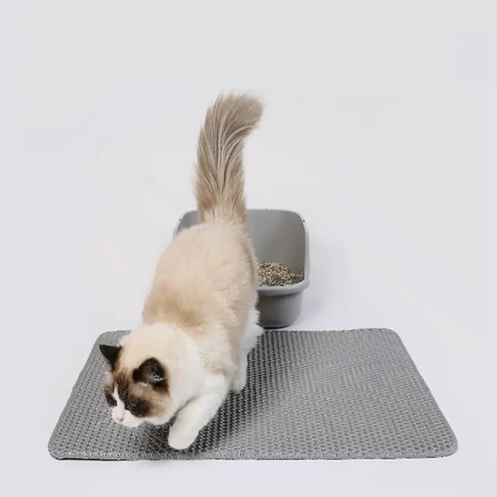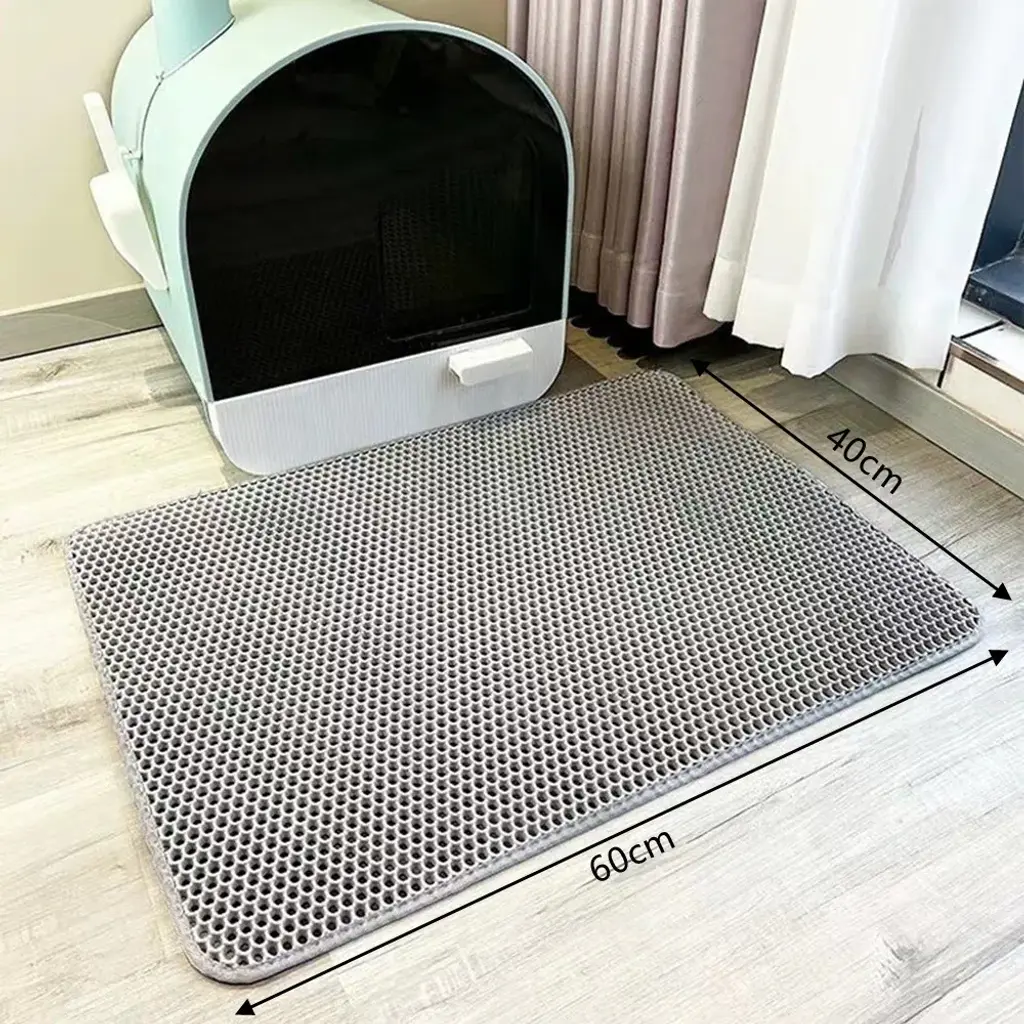 Product Specifications: Material: EVA, Size: 23.6 x 15.7 inches (60 x 40 cm), Color: Gray. Suitable for most cat sand pots, most of our customers are the choice Superior Comfort Material:Made of high quality EVA material that is lightweight and resilient to make your cat's feet comfortable. For cats who walk on it, it feels as comfortable as they are doing foot massage. It is also lightweight, durable and can be washed directly with water Double Layer Structure: The large diameter design is suitable for many cat sand. With the large diameter mesh and double layer design, the size of the mat mesh is uniform and will not snag the cat's feet, and the cat sand will be sandwiched between the mat immediately after dropping, preventing it from scattering into other areas of your home. Collect the loose cat sand and clean the cat toilet easily Waterproof & Anti-Slip:The bottom is made of waterproof and anti-slip material, so you don't have to worry about your floor and carpet from water and urine stains. It has a non-slip function, so you don't have to worry about it slipping when walking on it Nice Cat Mat:EVA mat is eco-friendly, lightweight and durable, it can be used at home, in the car, for travel, in any situation. You can also lift the mat and put it in the cat toilet as it is, or you can reuse the sand collected inside the mat to keep it clean around your cat toilet