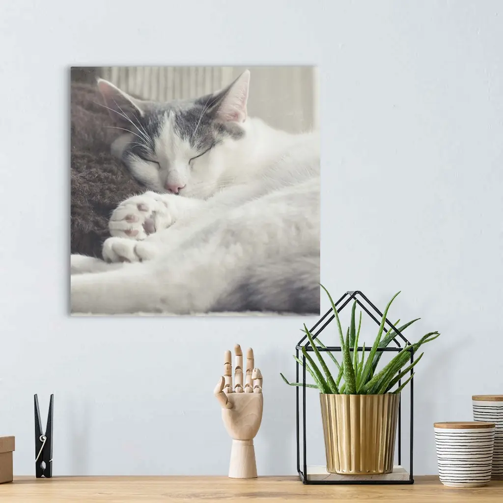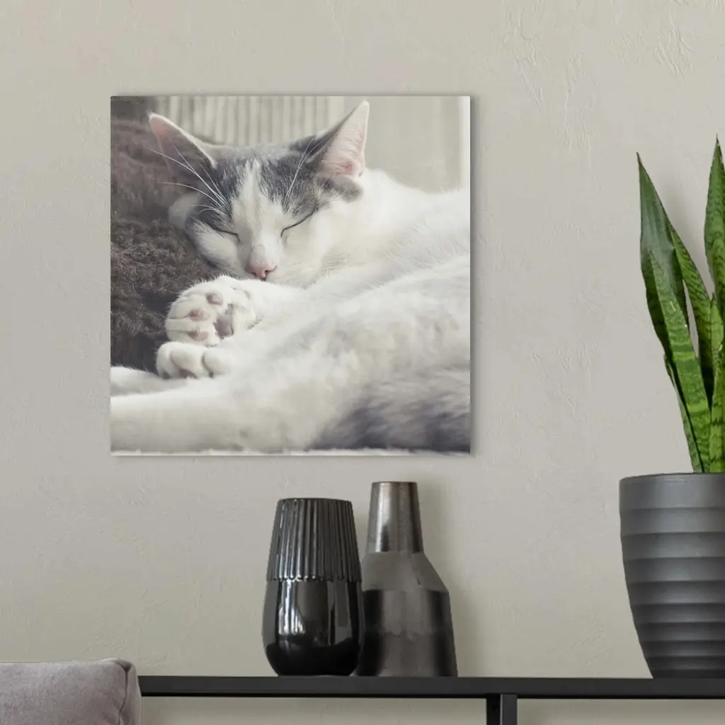 Cat sleeping on couch, leaning his head against brown cushion. wall art for home and office decor. Discover canvas art prints, photos, mural, big canvas art and framed wall art in GreatBigCanvas.com's varied collections.