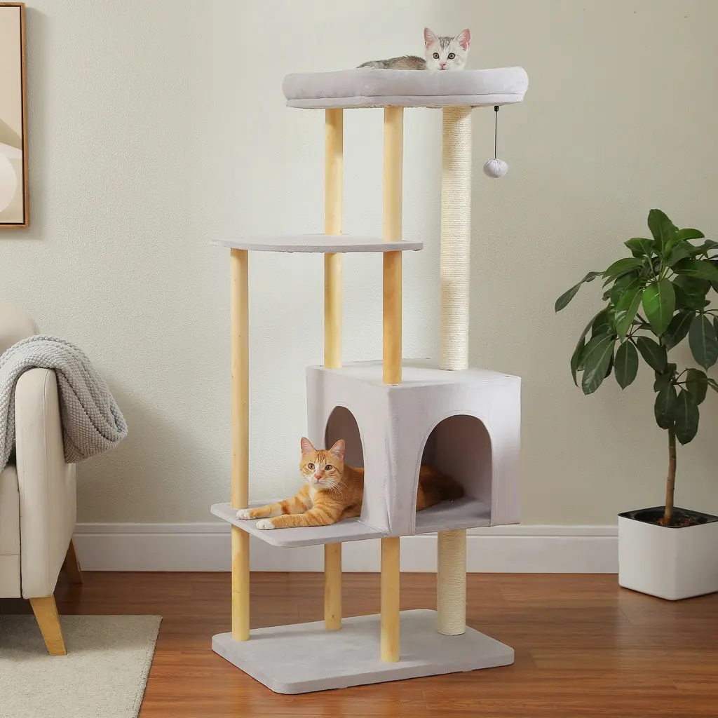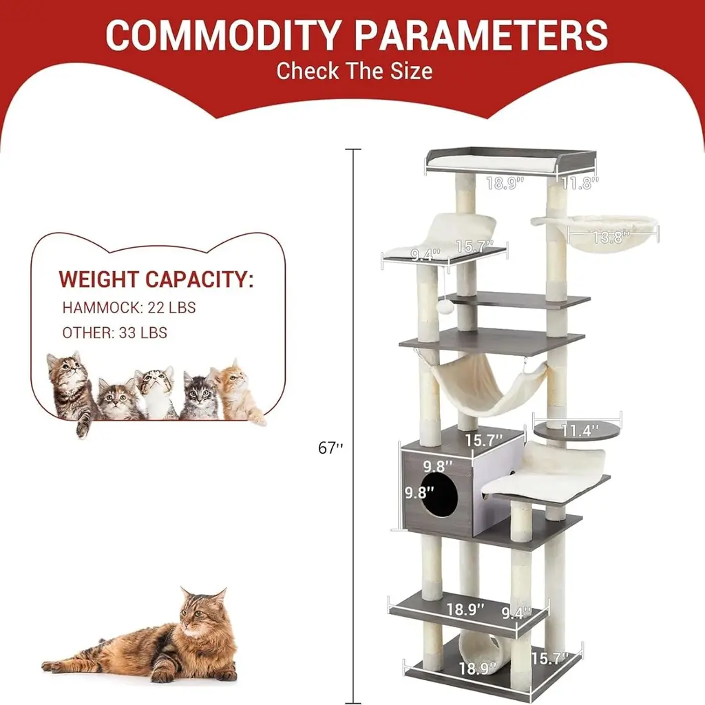 Cat Tree For Large Cats 67 Inches,multi-Level Cat Tower With Scratching Posts - 67'' Dark Gray Modern Cat Tree