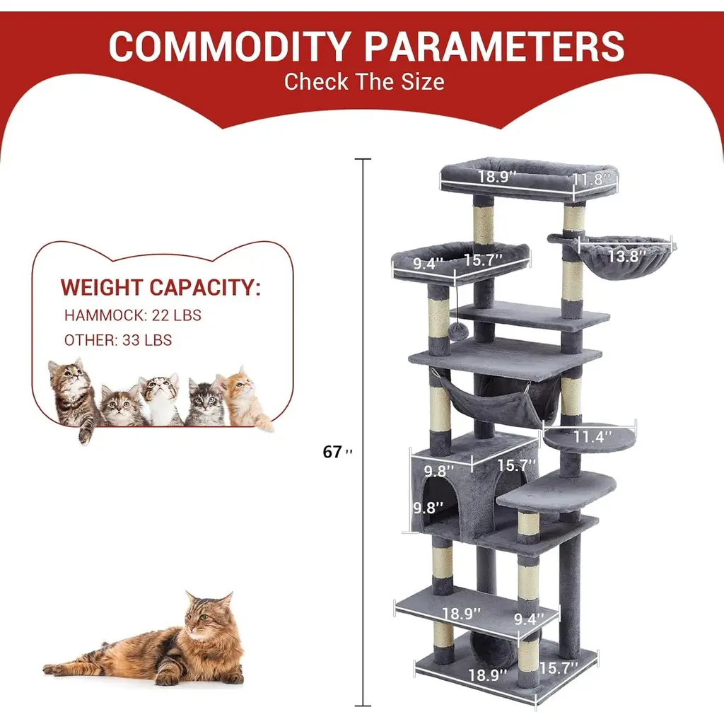 Cat Tree For Large Cats 67 Inches,multi-Level Cat Tower With Scratching Posts - 67'' Dark Gray Plush Cat Tree