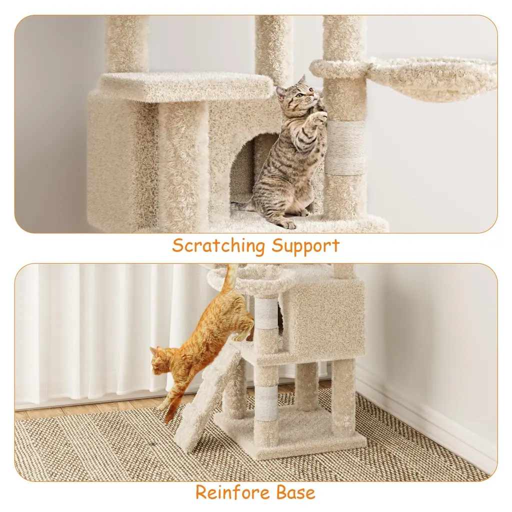 Cat Tree, With 2 Roomy Condo, 4 Perch, 63 Inches - Light Yellow