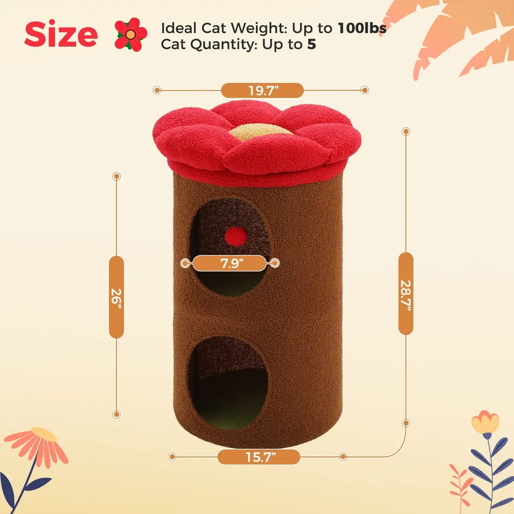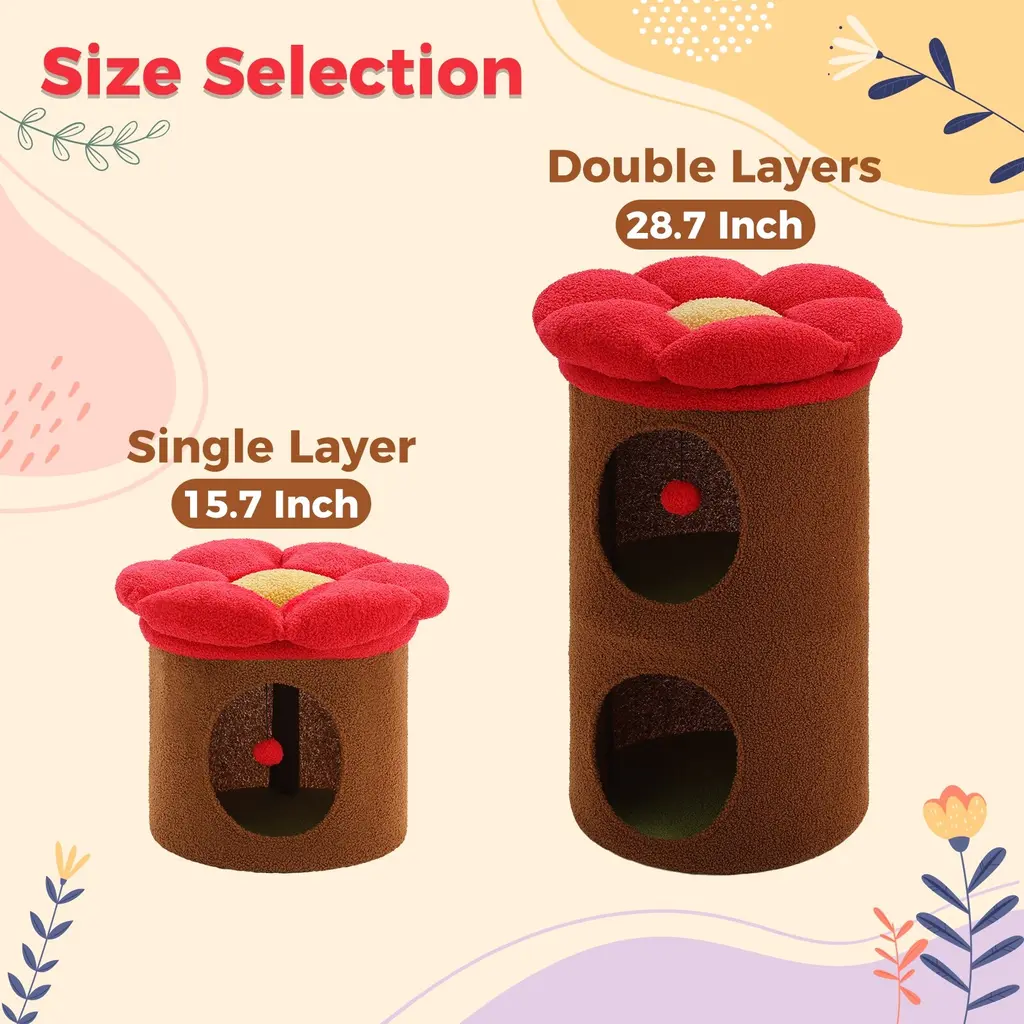 Cat Tree With Flower Design - M - Brown