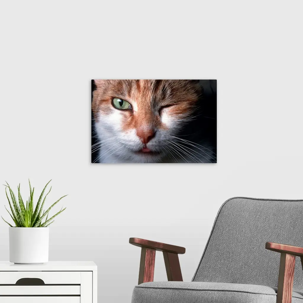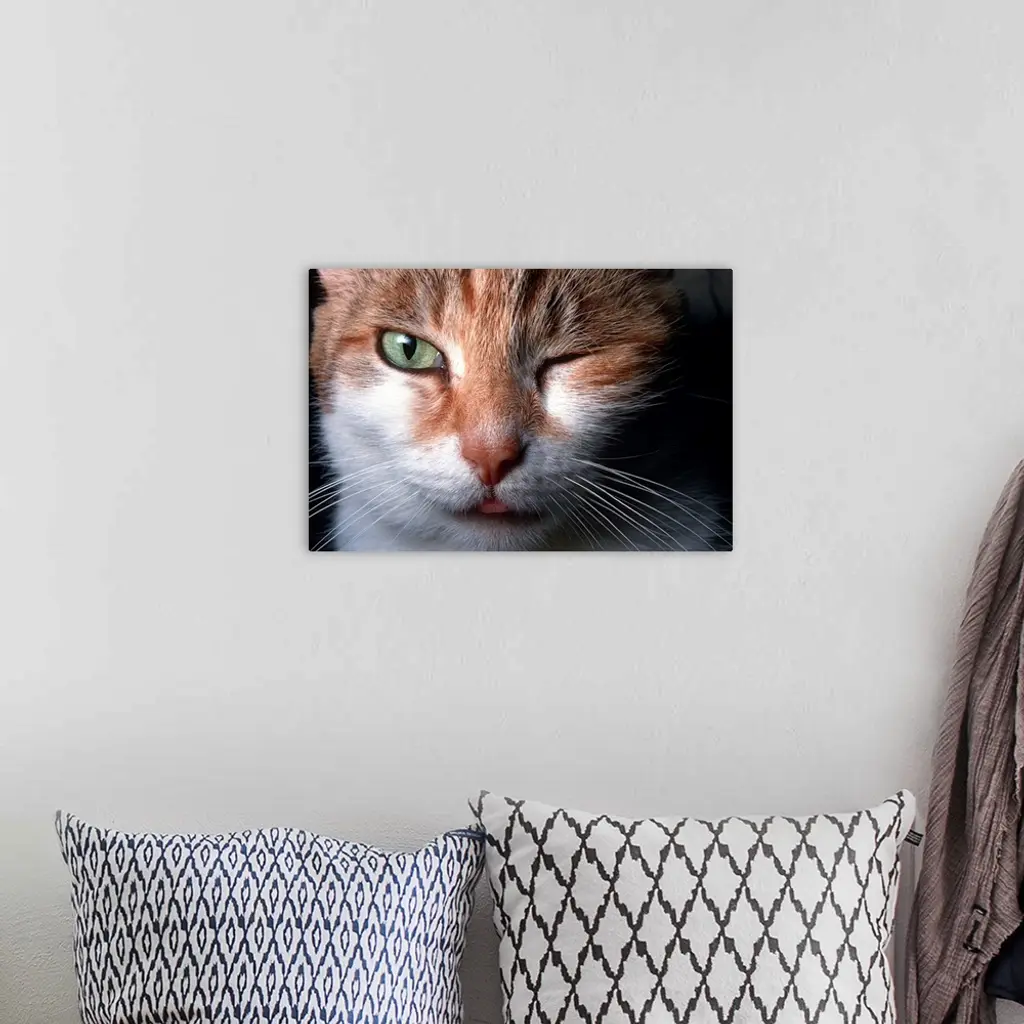 Cat winking wall art for home and office decor. Discover canvas art prints, photos, mural, big canvas art and framed wall art in GreatBigCanvas.com's varied collections.