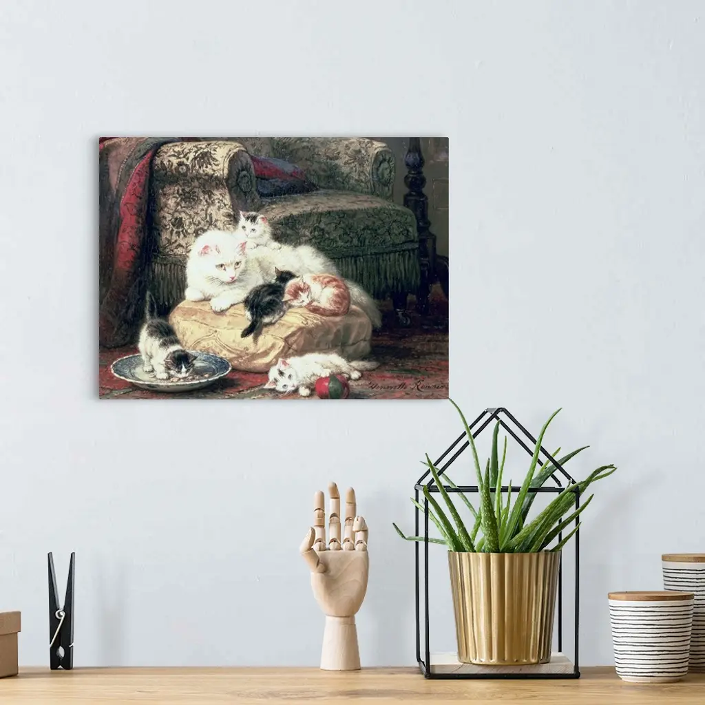 Cat with her Kittens on a Cushion wall art for home and office decor. Discover canvas art prints, photos, mural, big canvas art and framed wall art in GreatBigCanvas.com's varied collections.