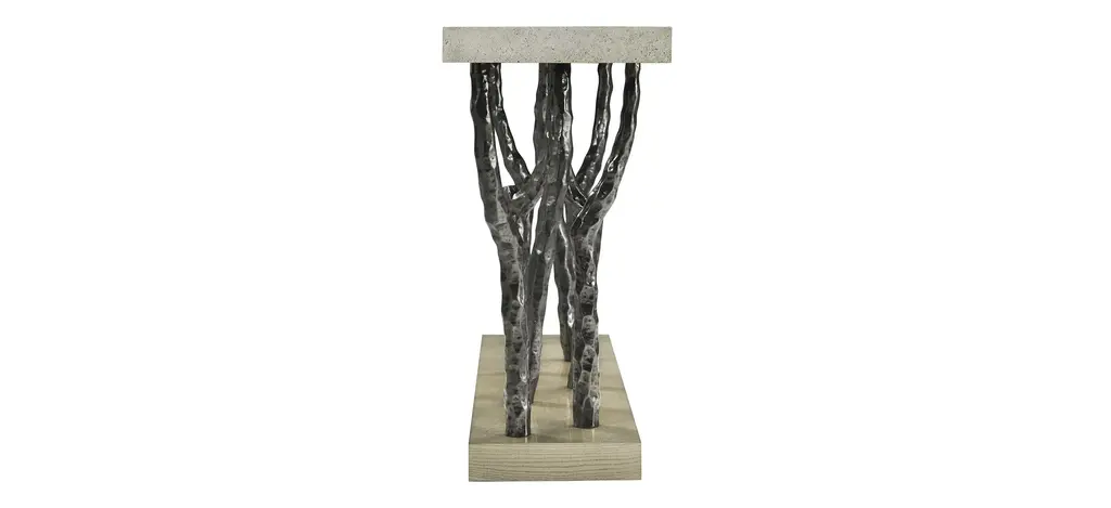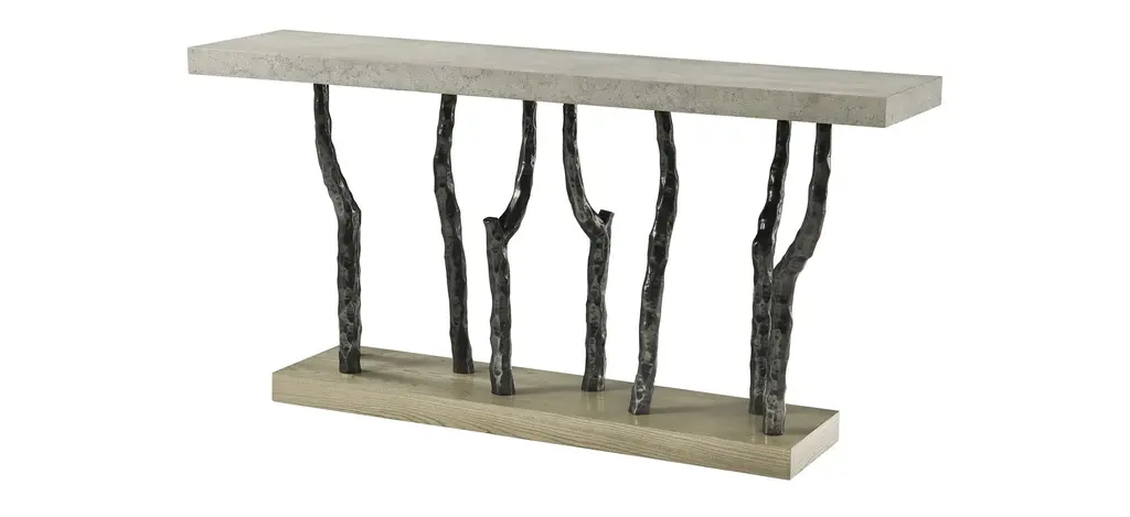 The Catalina branch console is a contemporary console table made with cast metal legs in our Volcanic finish and done with our stone-like porous Mineral Finish at the top.