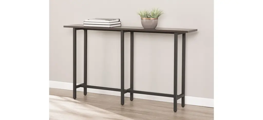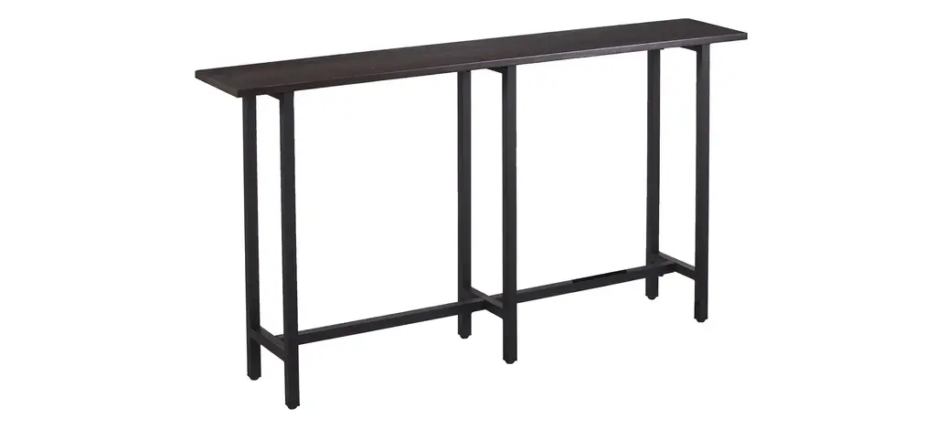Counter it with this Catalina Console table, ideal for your living room, entryway, or open concept living space. Adorn this long, narrow console table with photographs, plants,and other decor to give the room of your choice a more personalized style. With matte black and espresso tones, this modern, industrial style sofa table complements any home.