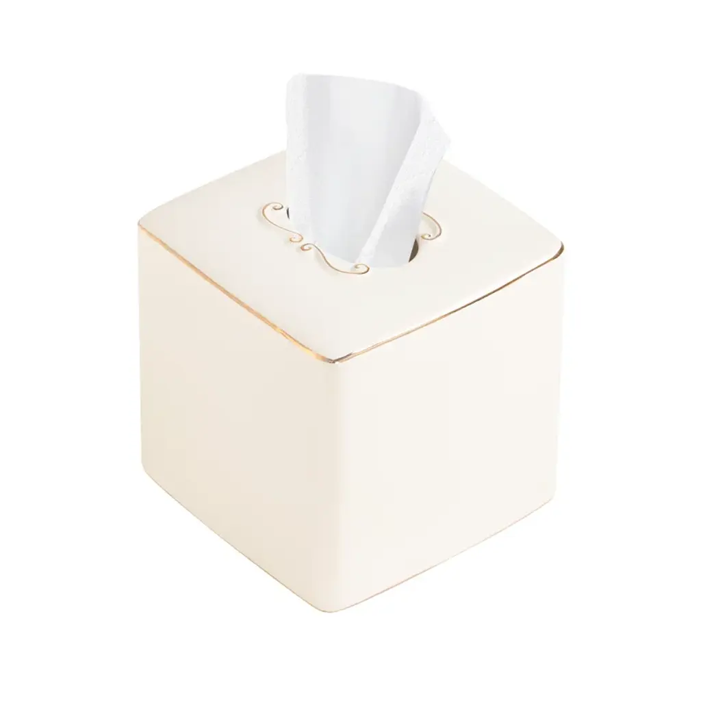 Catalina Natural/gold Coordinated Enamel Stripes Rectangular Tissue Holder (Fits 4"h X 9"l Box)