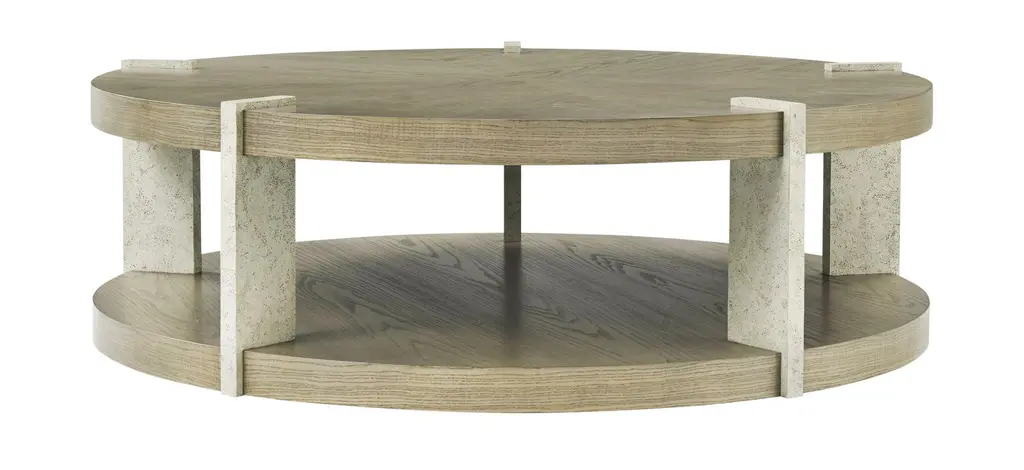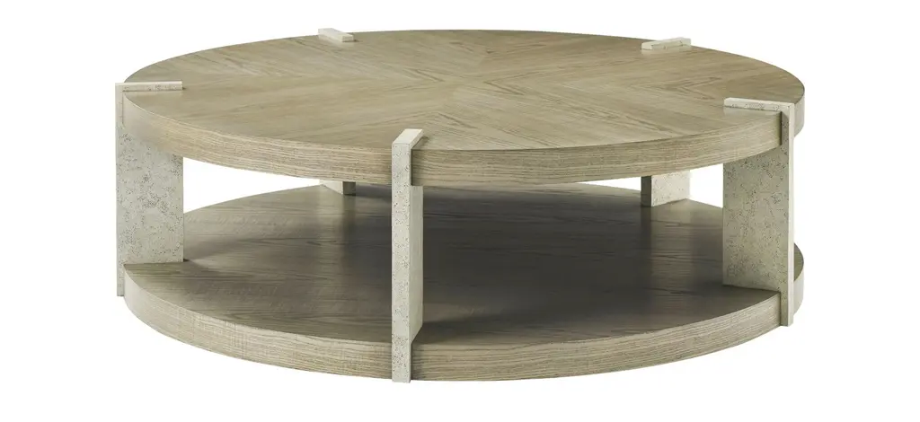 The Catalina round cocktai table is a serene circular cocktail table. The legs of this table are finished in our new cool, porous Mineral finish.