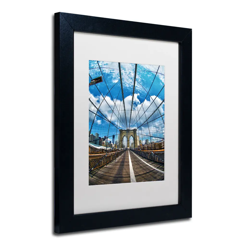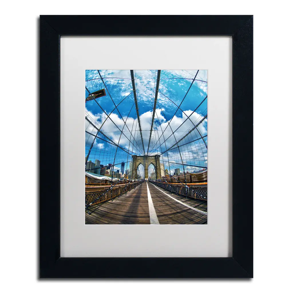 Cateyes 'Brooklyn Bridge' White Matte, Black Framed Wall Art - White Matte, Black Frame 11x14 (Print Is 8X10)