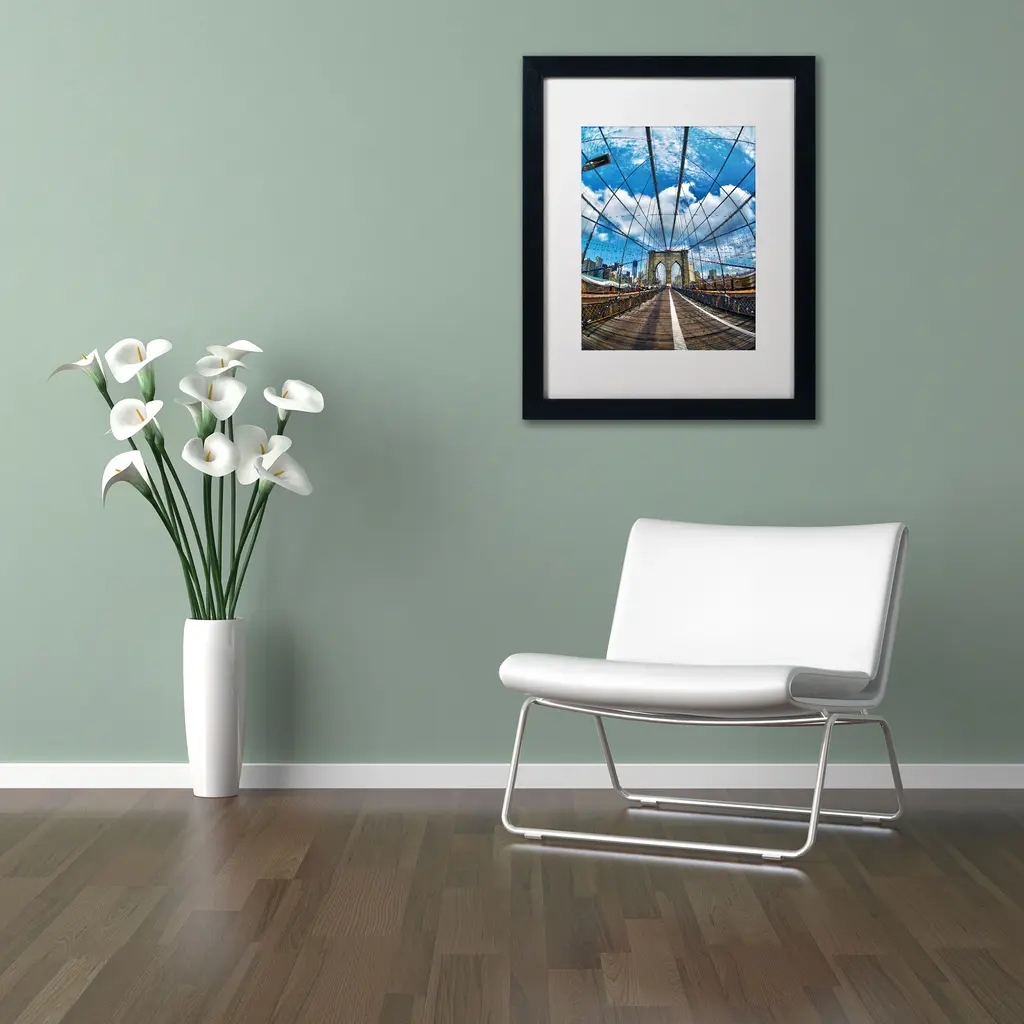 Cateyes 'Brooklyn Bridge' White Matte, Black Framed Wall Art - White Matte, Black Frame 16x20 (Print Is 11x14)