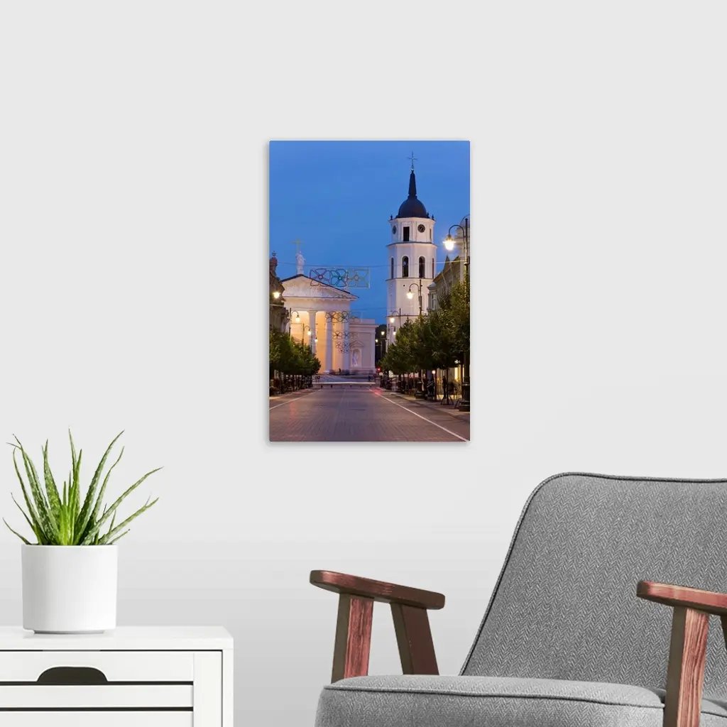 Cathedral and Bell Tower looking along Gedimino street, Vilnius, Lithuania wall art for home and office decor. Discover canvas art prints, photos, mural, big canvas art and framed wall art in GreatBigCanvas.com's varied collections.