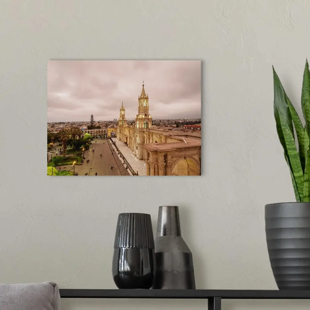 Cathedral At Twilight, Plaza De Armas, Elevated View, Arequipa, Peru
