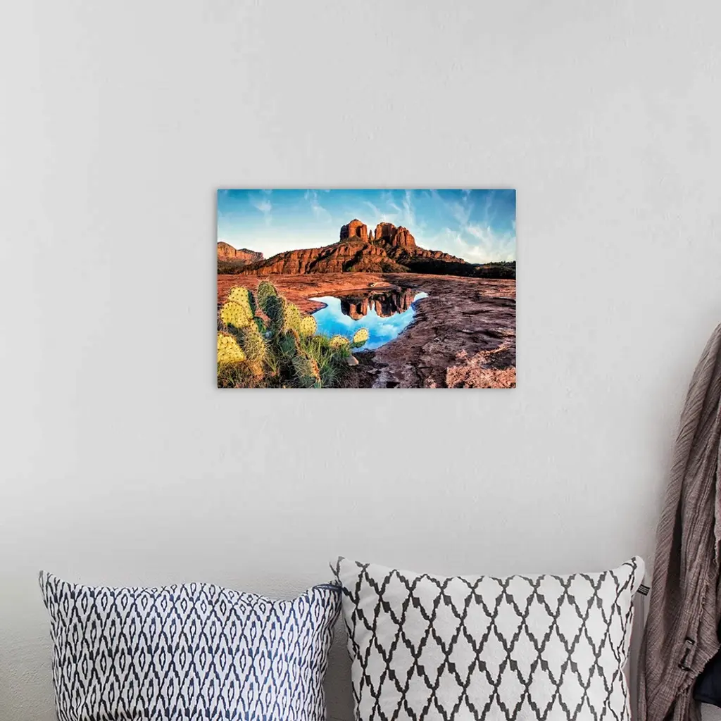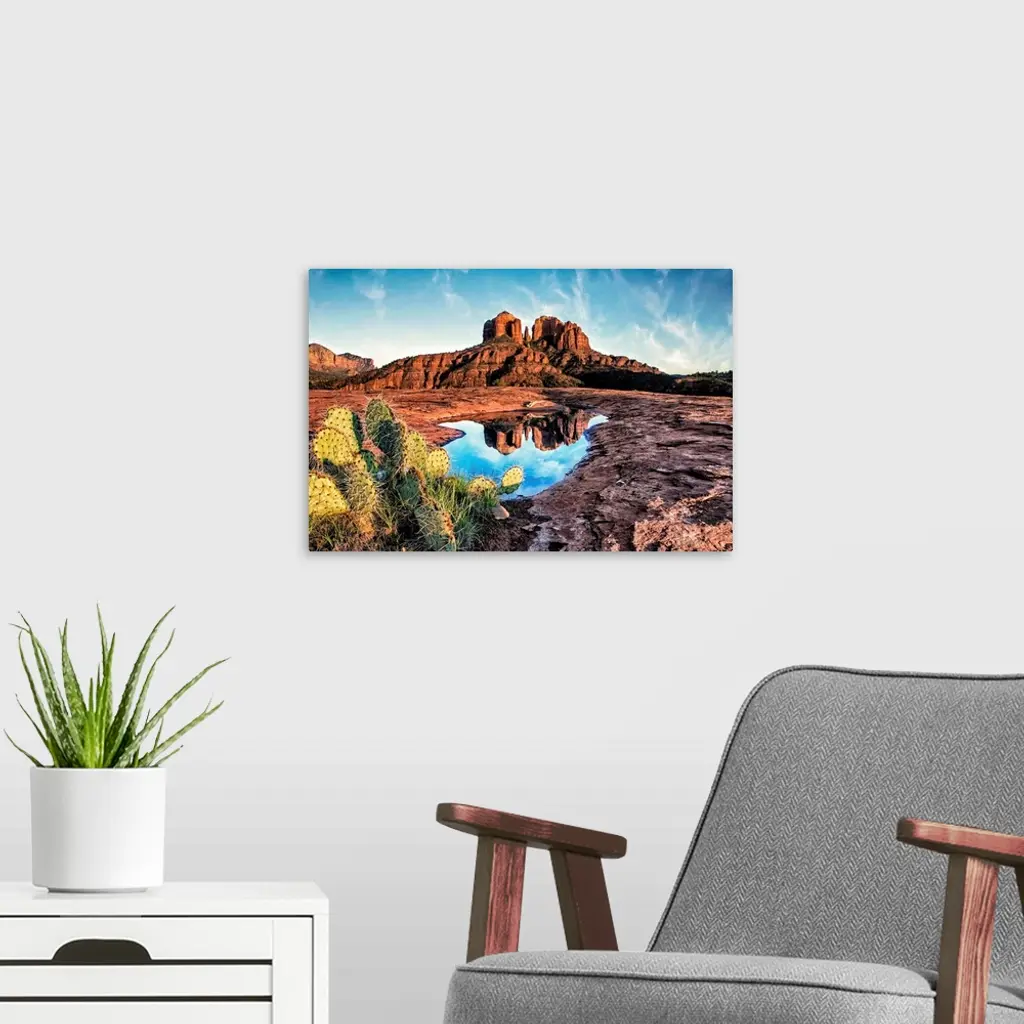 Cathedral Rocks with reflection at sunset in Sedona, Arizona
