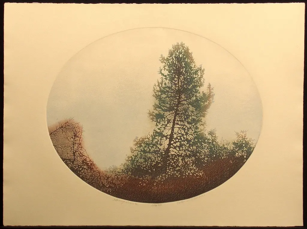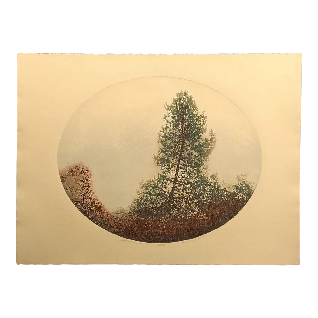 "Spring Pines I" by Catherine O'Connor Limited Edition Etching on buff Arches paper Hand signed by the artist Paper Size: 22" x 29-1/2" Image Size: 17-1/4" x 21-1/2" Edition Size: 300 Circa 1980s Condition is: Excellent 100 percent guarantee of authenticity Certificate of Authenticity is included