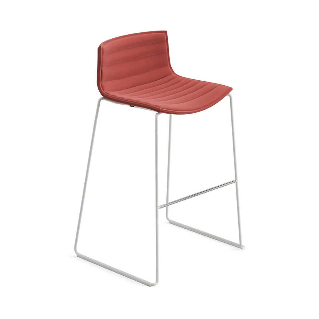The Catifa 46 Fully Upholstered Stool with Sled Base from Arper combines lightweight design with lively, informal style, perfect for both contract settings and compact residential spaces. Featuring a steel sled base and a comfortable fully upholstered seat, this stackable stool offers exceptional flexibility. With a broad range of finishes, bases, and accessories, it adapts effortlessly to diverse environments while preserving its distinctive character. Elevate your space with a stool that balances practicality and sophisticated design. Highlights