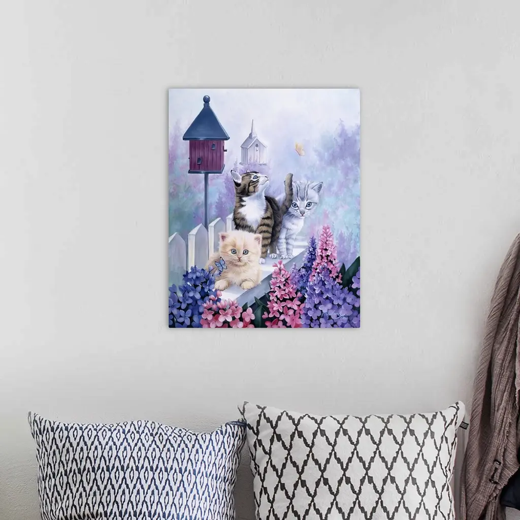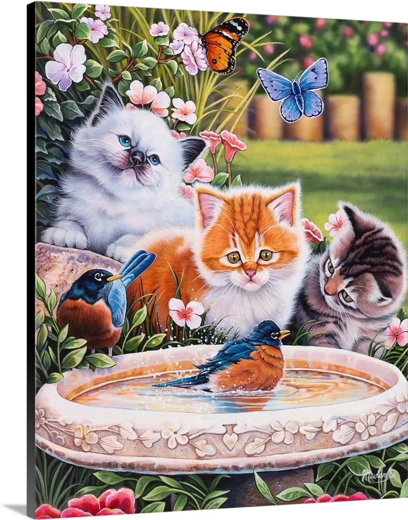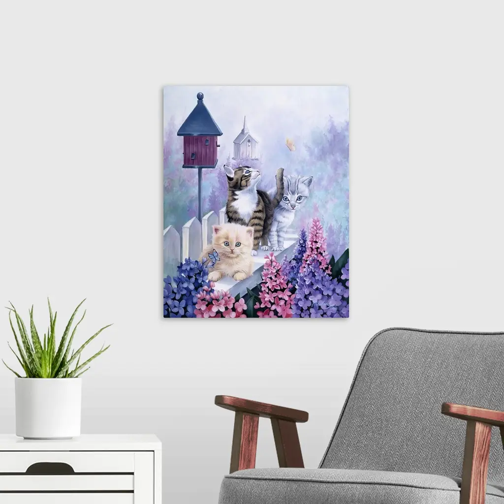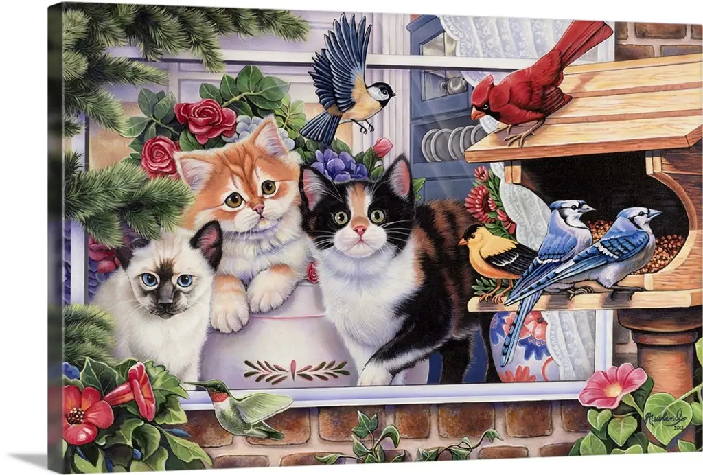 Cats In Front Of The Birdfeeder wall art for home and office decor. Discover canvas art prints, photos, mural, big canvas art and framed wall art in GreatBigCanvas.com's varied collections.