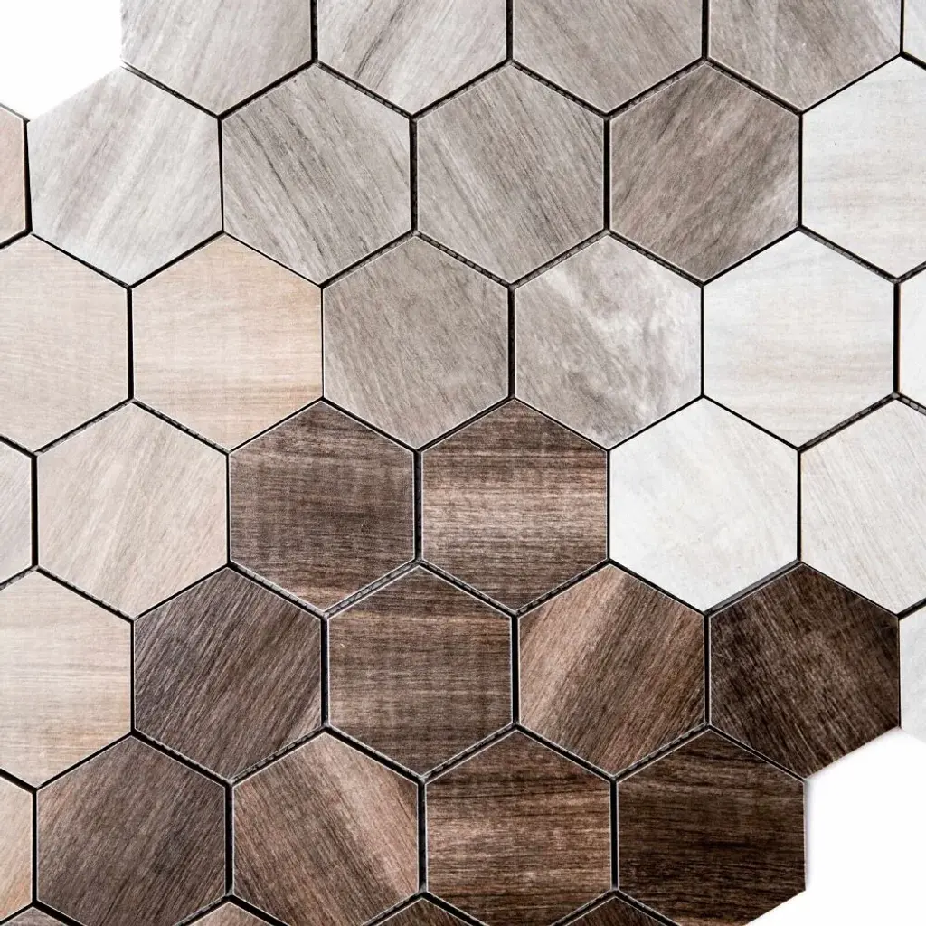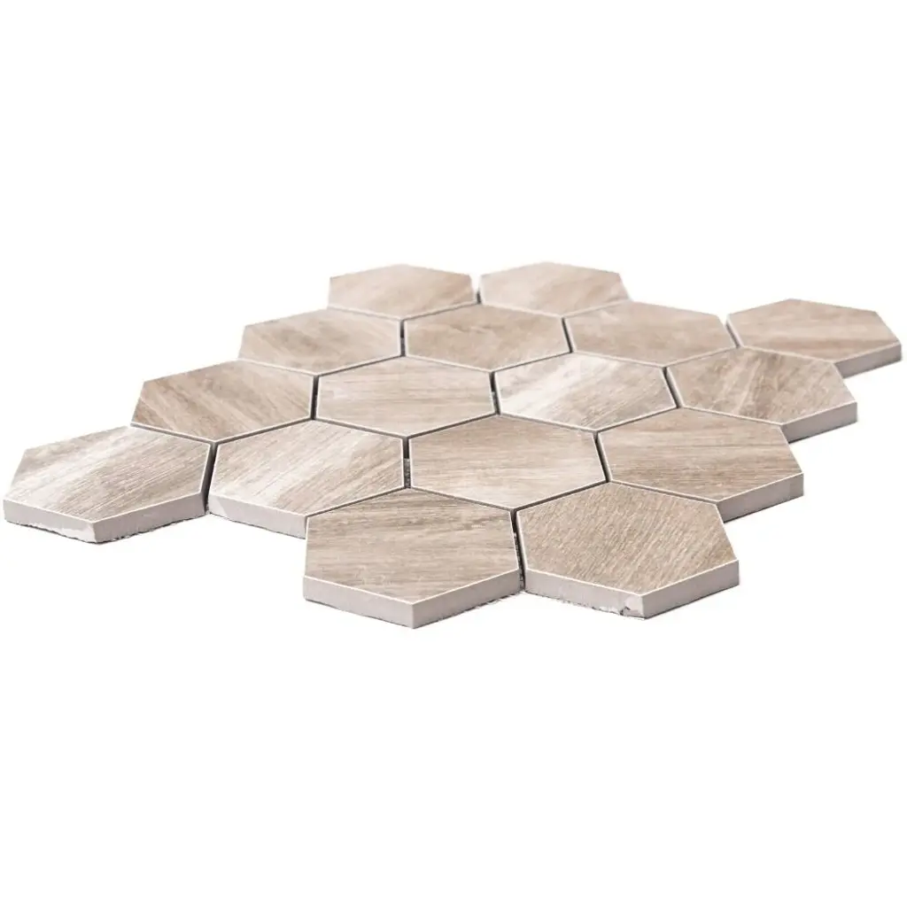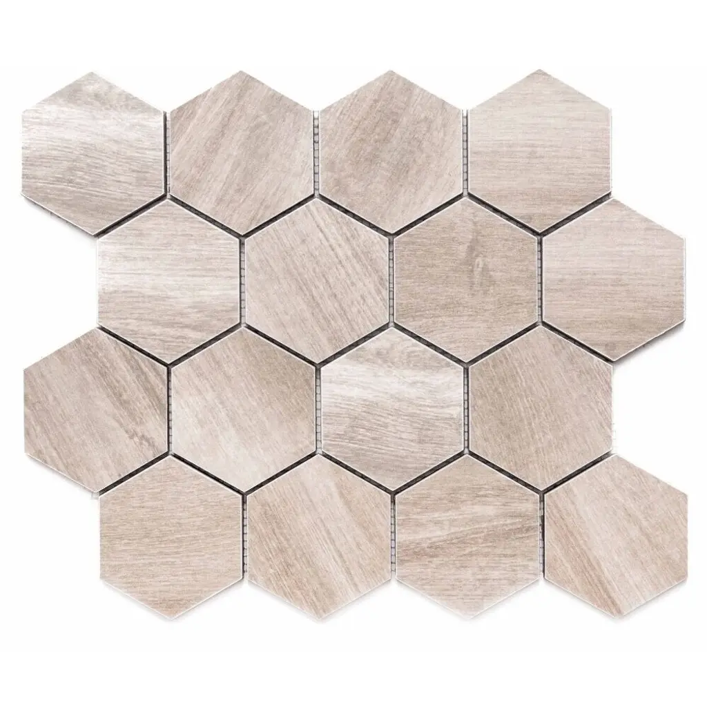 Get the timeless look of wood flooring with the benefits of porcelain tile with our Catskills. This waterproof product is used for bathrooms, laundry rooms, and kitchens, but also works in living rooms, basements, or walls. Wood-look-inspired porcelain tile products are designed with a focus on performance and durability which makes them ideal for any project. Porcelain wood-look tiles are versatile and hold up over time better than hardwood or vinyl. The Tile Life's Catskills series features easy-to-install 3" x 3" hexagon decorative mosaic tiles, perfect for adding texture and style to any space. Ideal for backsplashes, bathrooms, showers, kitchens, floors, and walls, these versatile tiles offer both beauty and durability. FEATURES: DIMENSIONS: