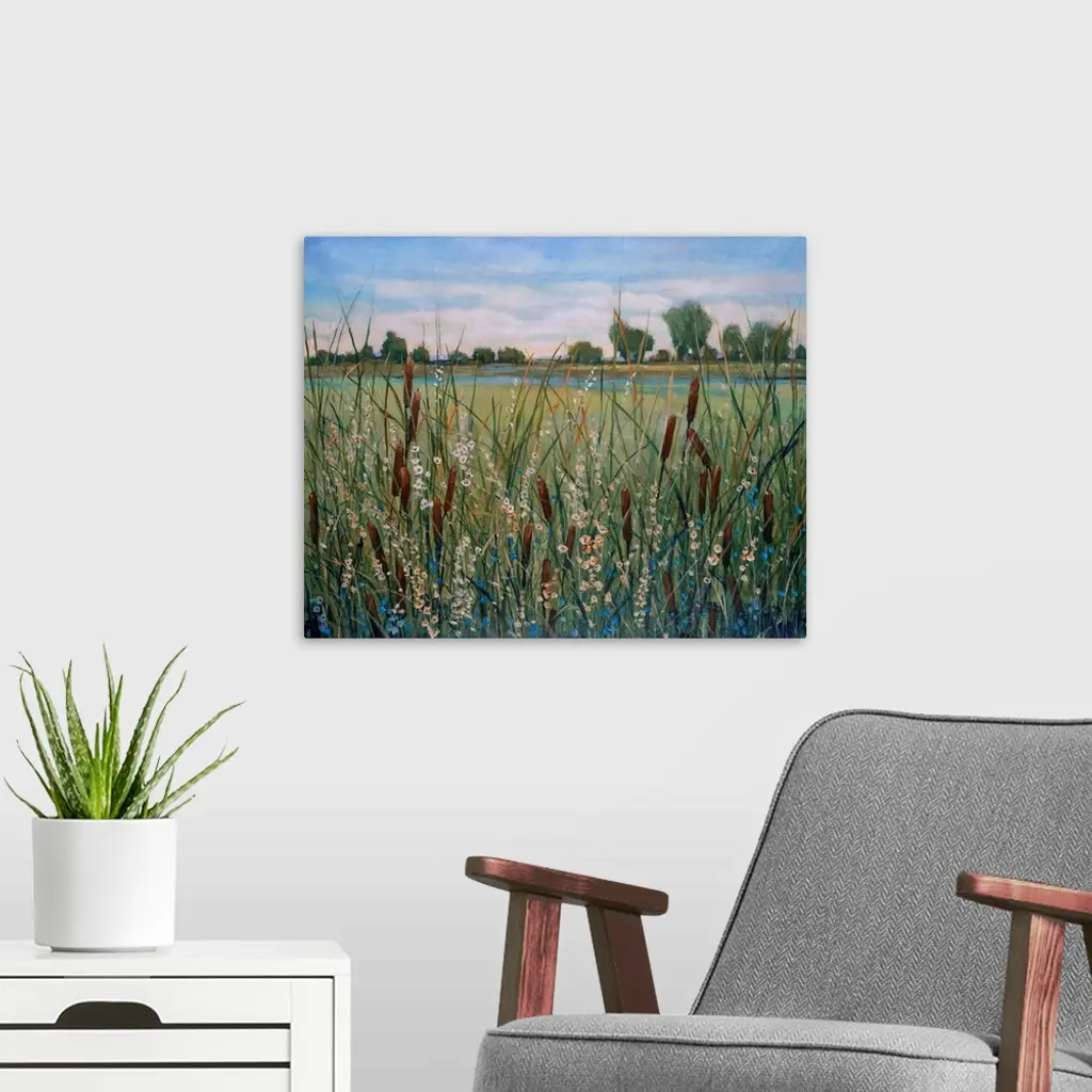 Cattail Marsh II wall art for home and office decor. Discover canvas art prints, photos, mural, big canvas art and framed wall art in GreatBigCanvas.com's varied collections.