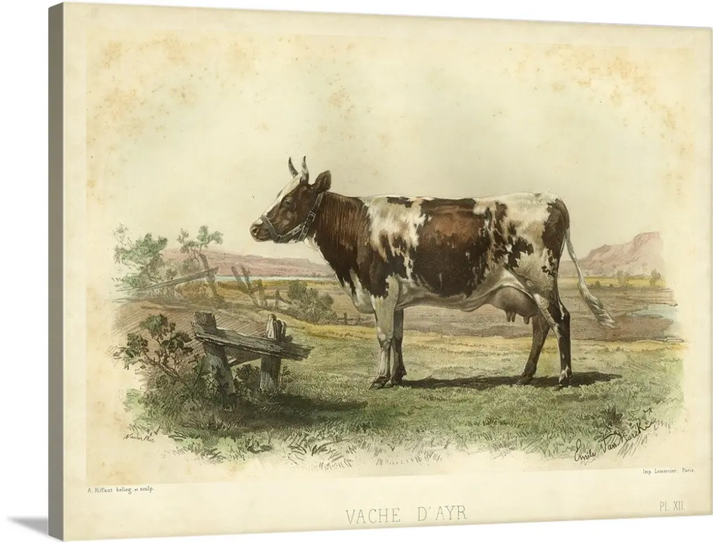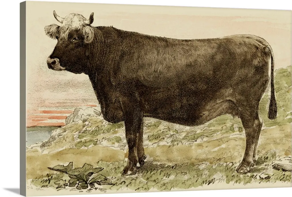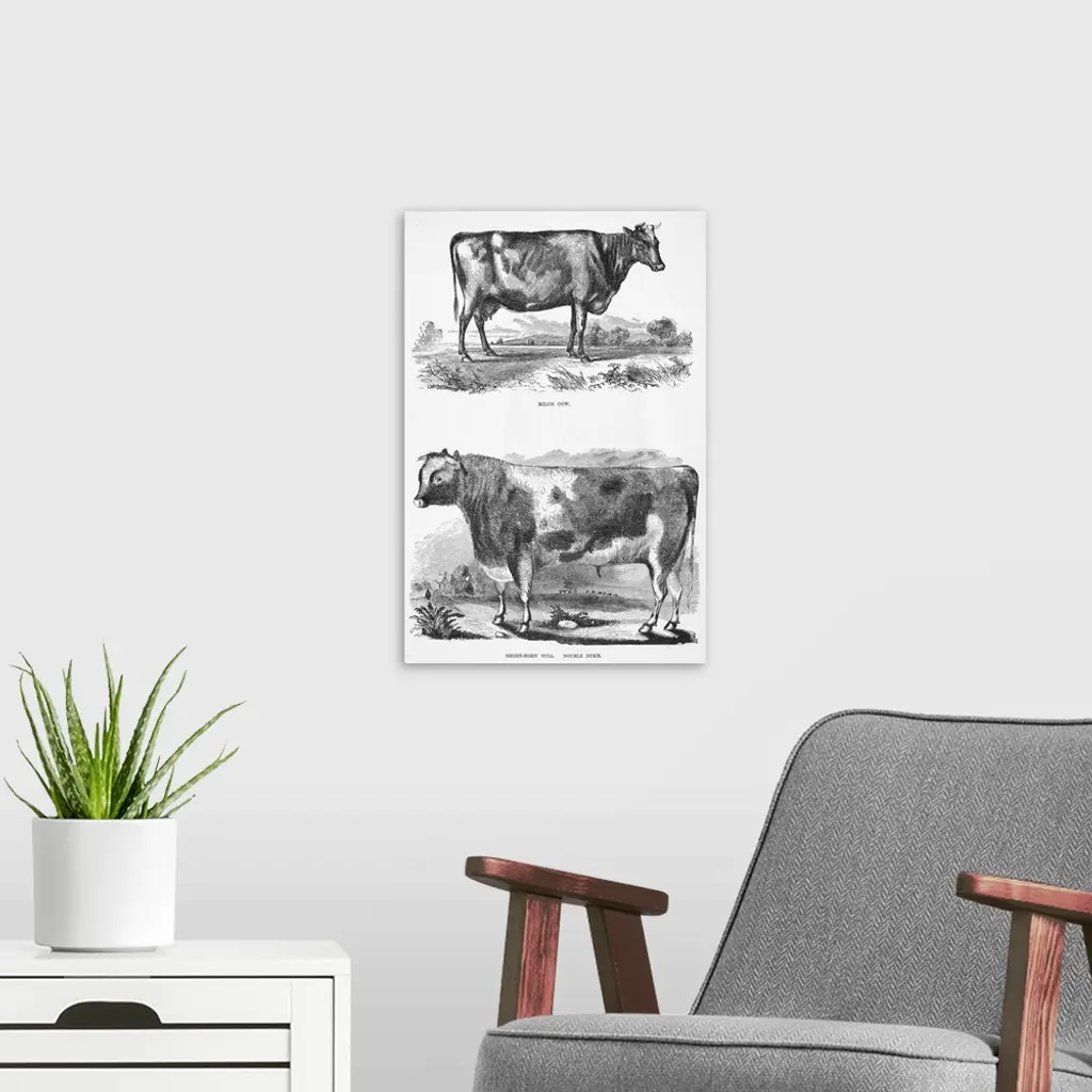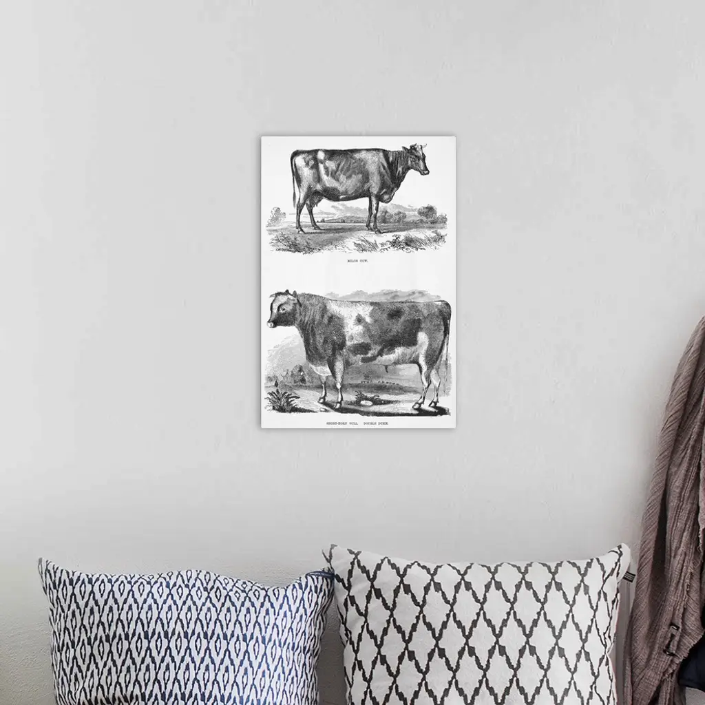 Cattle, 19th Century. Milch Cow (Top); Short-Horn Bull, Double Duke (Bottom). Wood Engravings, 19th Century.