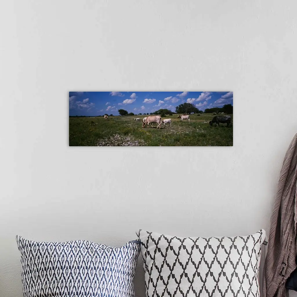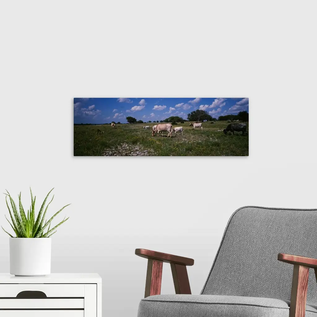 Cattle grazing in the field, Texas Longhorn cattle, Y.O. Ranch, Texas wall art for home and office decor. Discover canvas art prints, photos, mural, big canvas art and framed wall art in GreatBigCanvas.com's varied collections.