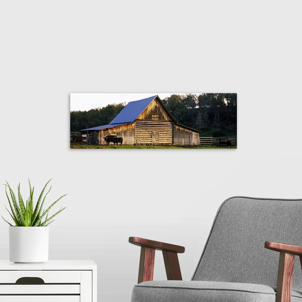 Cattle In Front Of A Barn, Historical Barn, Collbran, Colorado