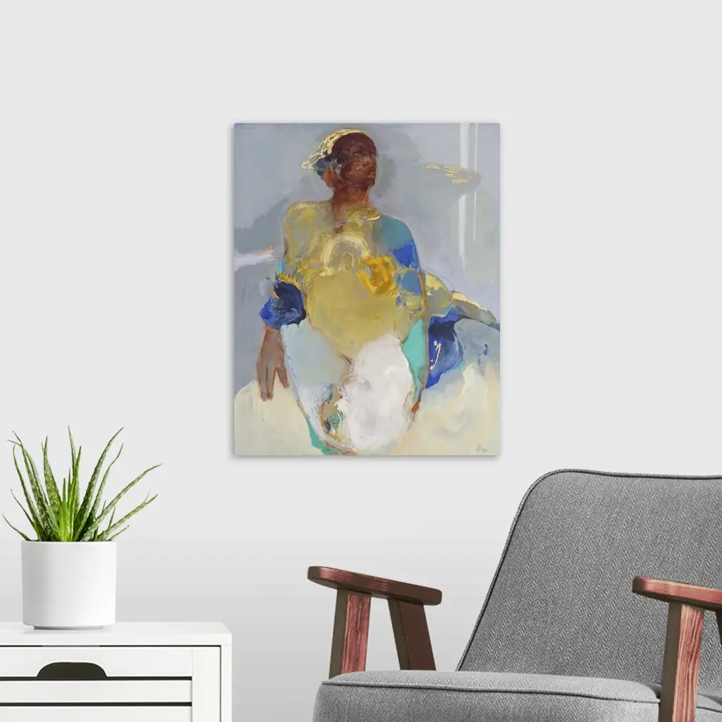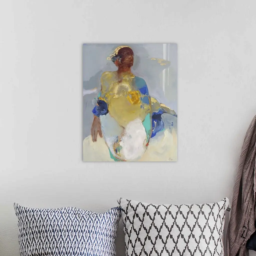 Caught in the moment 1, 2021. (Originally acrylics, pastels and gold leaf on canvas.)