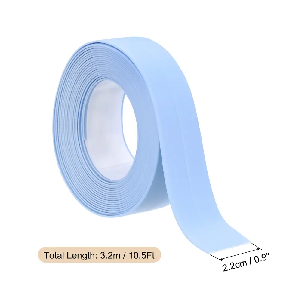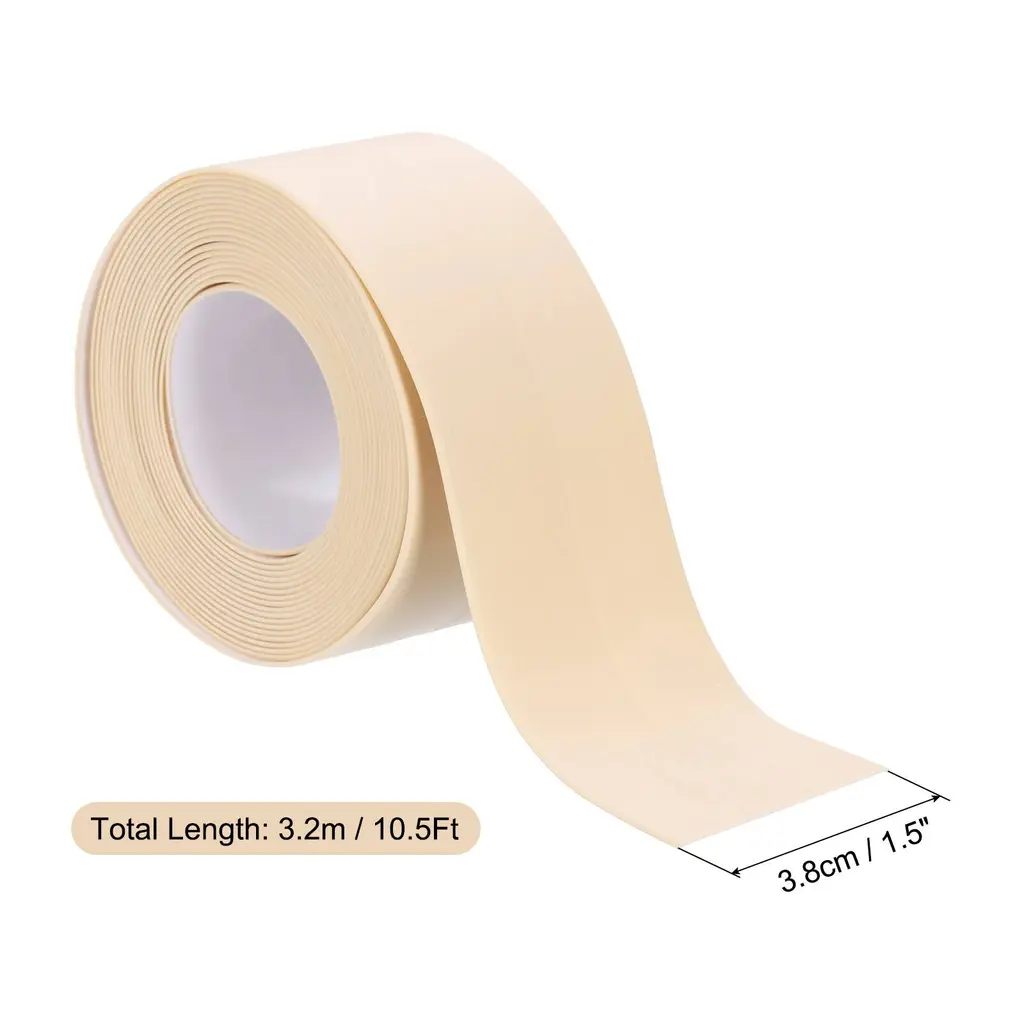Specification:Material: PVCSize: 1.5" x 10.5Ft/ 3.8cm x 3.2mColor: BeigeHow to use:1. Clean the surface and keep it dry, remove the protective layer of the tape.2. Trim the tape to the length of the area to be sealed.3. Before use, heat the tape with a hair dryer to increase adhesion.4. Press repeatedly so that the self-adhesion of the waterproof caulking strip fits the gap as closely as possible.5. After installing the caulking strip, press firmly and wait approximately 8-10 hours before using.Description:Size & Material: This caulk strip tape is 1.5 inches wide and 10.5 feet long, made of PVC material which is durable and waterproof.Function: It is self-adhesive and designed for sealing gaps and cracks in the kitchen, bathroom, toilet, sink, floor, corner edges, and other areas where water may seep through.How to Use: Simply peel off the backing paper and apply the tape to the desired area, pressing firmly to ensure a tight seal. Use the included sealing tool to smooth out any wrinkles or air bubbles.Wide Application: This caulk strip tape is fit for preventing water leakage in damp or wet areas of your home. It provides a quick and easy solution for sealing gaps and protecting surfaces from water damage.Note: Make sure the surface is clean, dry, and free of dust or debris before applying the tape. Avoid stretching or twisting the tape during installation to maintain its effectiveness.