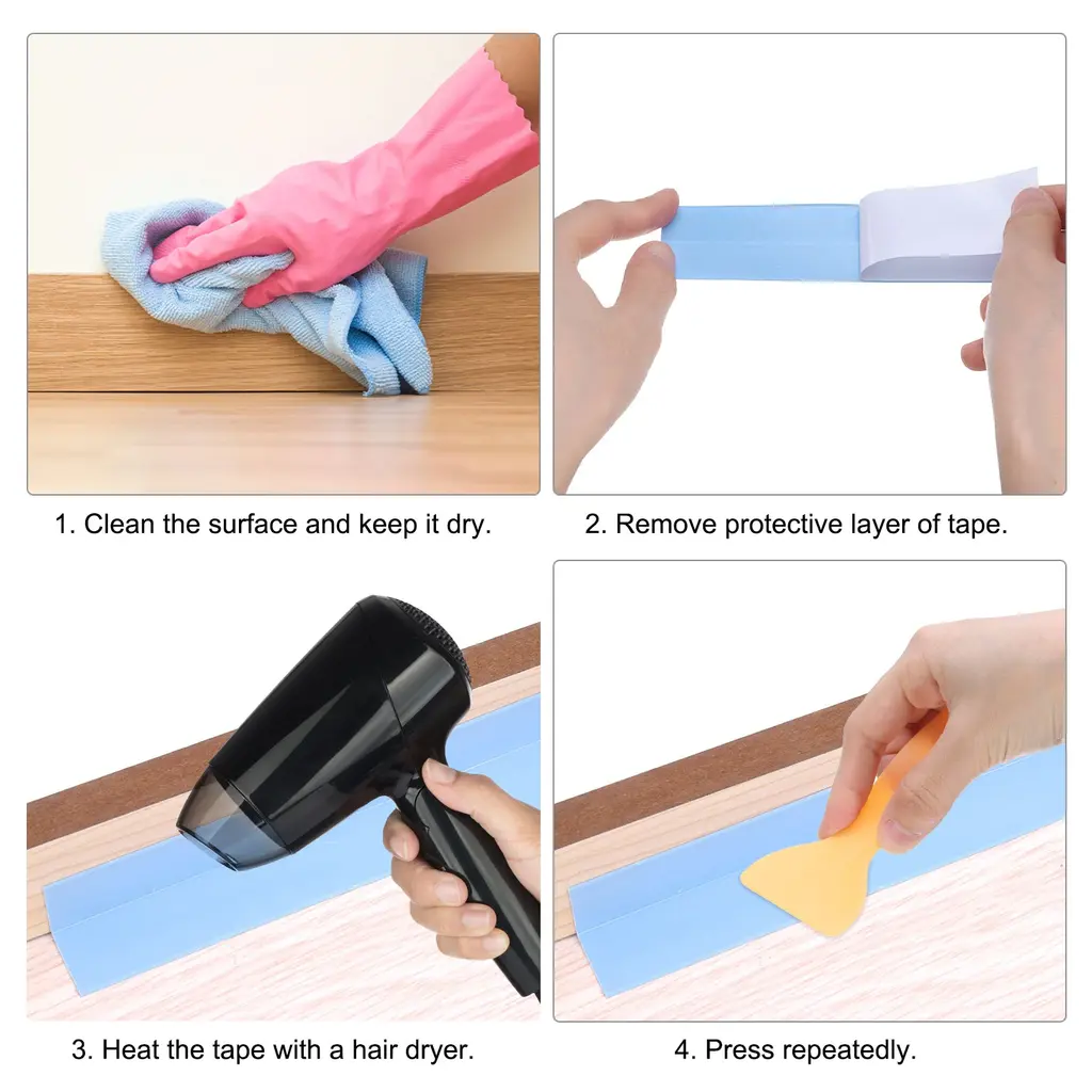Specification:Material: PVCSize: 1.5" x 10.5Ft/ 3.8cm x 3.2mColor: BeigeHow to use:1. Clean the surface and keep it dry, remove the protective layer of the tape.2. Trim the tape to the length of the area to be sealed.3. Before use, heat the tape with a hair dryer to increase adhesion.4. Press repeatedly so that the self-adhesion of the waterproof caulking strip fits the gap as closely as possible.5. After installing the caulking strip, press firmly and wait approximately 8-10 hours before using.Description:Size & Material: This caulk strip tape is 1.5 inches wide and 10.5 feet long, made of PVC material which is durable and waterproof.Function: It is self-adhesive and designed for sealing gaps and cracks in the kitchen, bathroom, toilet, sink, floor, corner edges, and other areas where water may seep through.How to Use: Simply peel off the backing paper and apply the tape to the desired area, pressing firmly to ensure a tight seal. Use the included sealing tool to smooth out any wrinkles or air bubbles.Wide Application: This caulk strip tape is fit for preventing water leakage in damp or wet areas of your home. It provides a quick and easy solution for sealing gaps and protecting surfaces from water damage.Note: Make sure the surface is clean, dry, and free of dust or debris before applying the tape. Avoid stretching or twisting the tape during installation to maintain its effectiveness.