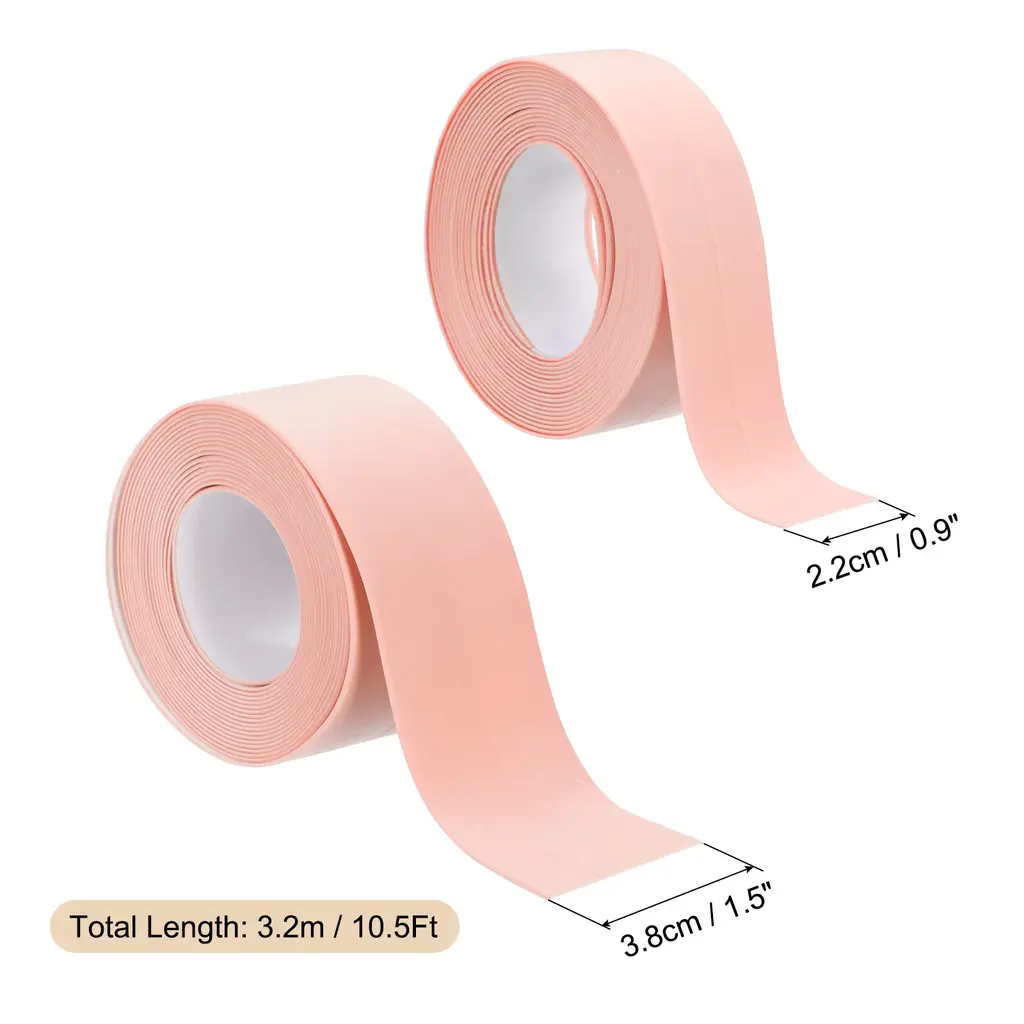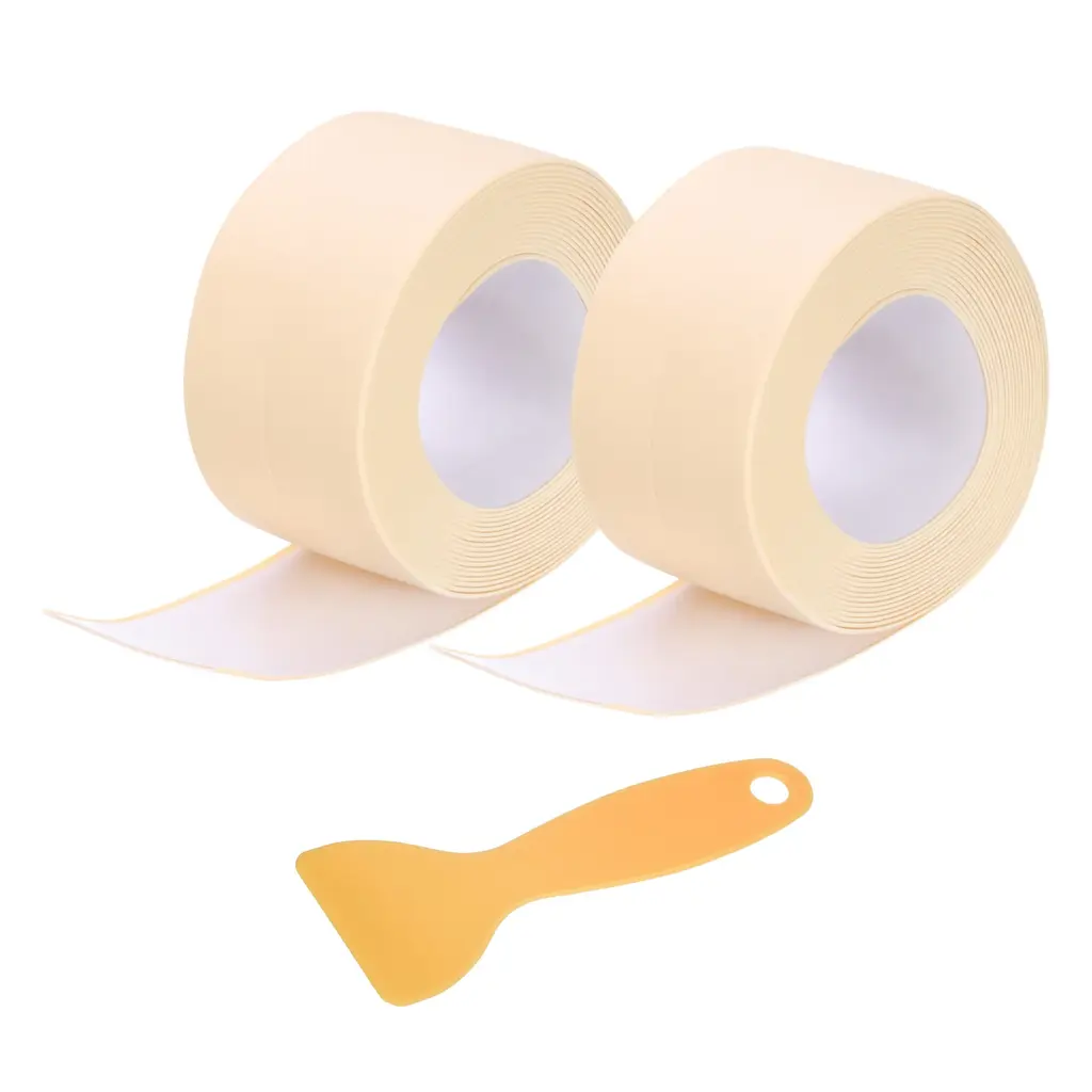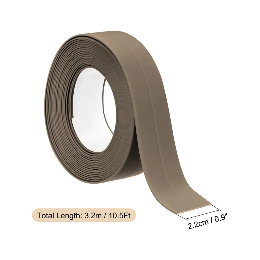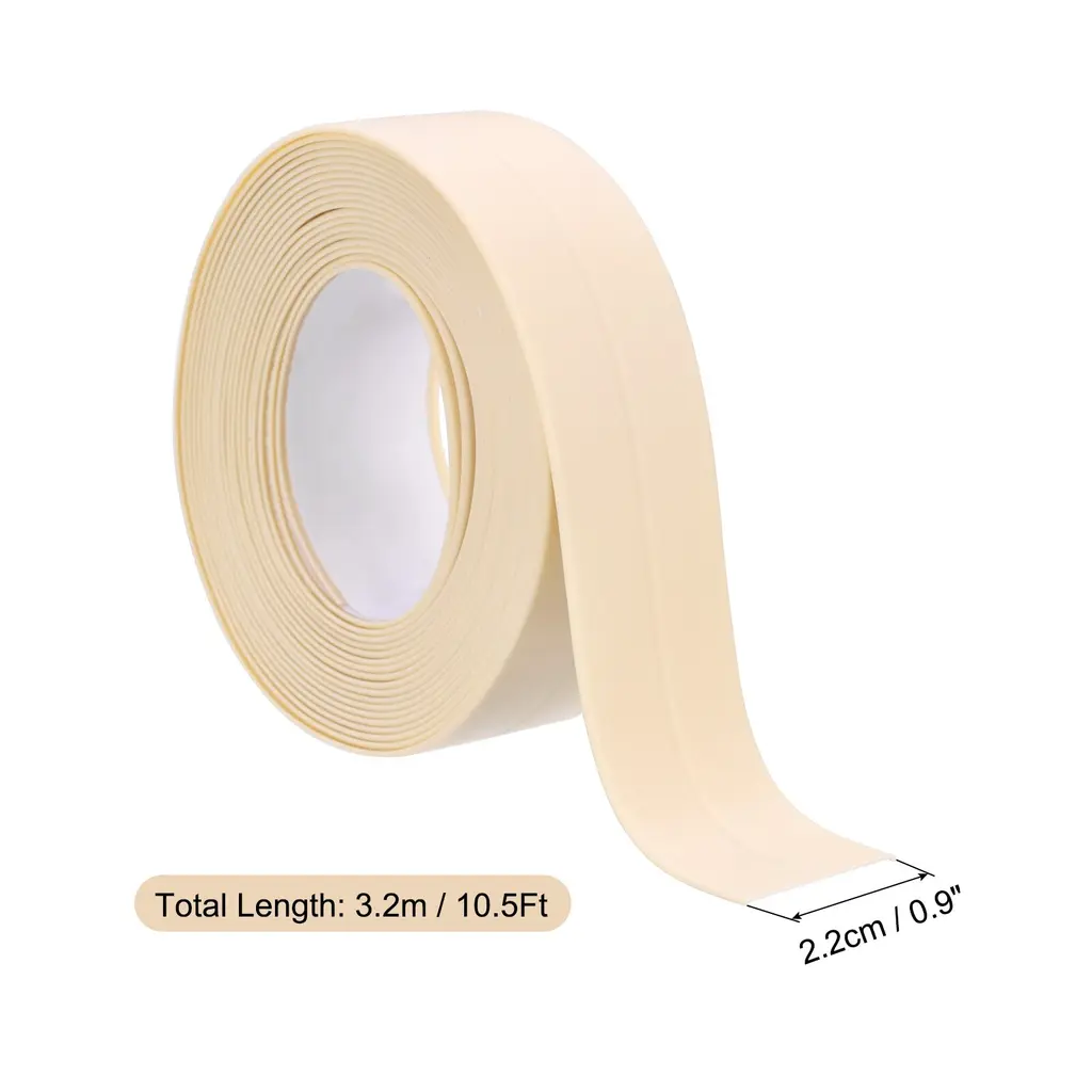 Specification:Material: PVCSize: 1.5" x 10.5Ft/ 3.8cm x 3.2mColor: BeigeHow to use:1. Clean the surface and keep it dry, remove the protective layer of the tape.2. Trim the tape to the length of the area to be sealed.3. Before use, heat the tape with a hair dryer to increase adhesion.4. Press repeatedly so that the self-adhesion of the waterproof caulking strip fits the gap as closely as possible.5. After installing the caulking strip, press firmly and wait approximately 8-10 hours before using.Description:Size & Material: This caulk strip tape is 1.5 inches wide and 10.5 feet long, made of PVC material which is durable and waterproof.Function: It is self-adhesive and designed for sealing gaps and cracks in the kitchen, bathroom, toilet, sink, floor, corner edges, and other areas where water may seep through.How to Use: Simply peel off the backing paper and apply the tape to the desired area, pressing firmly to ensure a tight seal. Use the included sealing tool to smooth out any wrinkles or air bubbles.Wide Application: This caulk strip tape is fit for preventing water leakage in damp or wet areas of your home. It provides a quick and easy solution for sealing gaps and protecting surfaces from water damage.Note: Make sure the surface is clean, dry, and free of dust or debris before applying the tape. Avoid stretching or twisting the tape during installation to maintain its effectiveness.