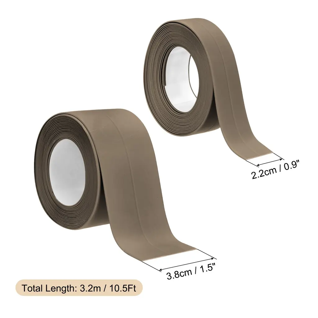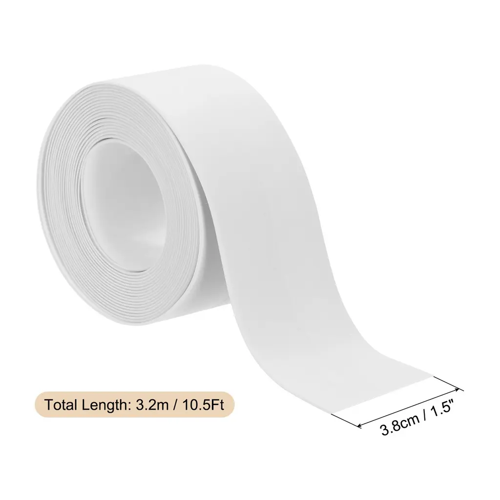 Specification:Material: PVCSize: 1.5" x 10.5Ft/ 3.8cm x 3.2mColor: BeigeHow to use:1. Clean the surface and keep it dry, remove the protective layer of the tape.2. Trim the tape to the length of the area to be sealed.3. Before use, heat the tape with a hair dryer to increase adhesion.4. Press repeatedly so that the self-adhesion of the waterproof caulking strip fits the gap as closely as possible.5. After installing the caulking strip, press firmly and wait approximately 8-10 hours before using.Description:Size & Material: This caulk strip tape is 1.5 inches wide and 10.5 feet long, made of PVC material which is durable and waterproof.Function: It is self-adhesive and designed for sealing gaps and cracks in the kitchen, bathroom, toilet, sink, floor, corner edges, and other areas where water may seep through.How to Use: Simply peel off the backing paper and apply the tape to the desired area, pressing firmly to ensure a tight seal. Use the included sealing tool to smooth out any wrinkles or air bubbles.Wide Application: This caulk strip tape is fit for preventing water leakage in damp or wet areas of your home. It provides a quick and easy solution for sealing gaps and protecting surfaces from water damage.Note: Make sure the surface is clean, dry, and free of dust or debris before applying the tape. Avoid stretching or twisting the tape during installation to maintain its effectiveness.