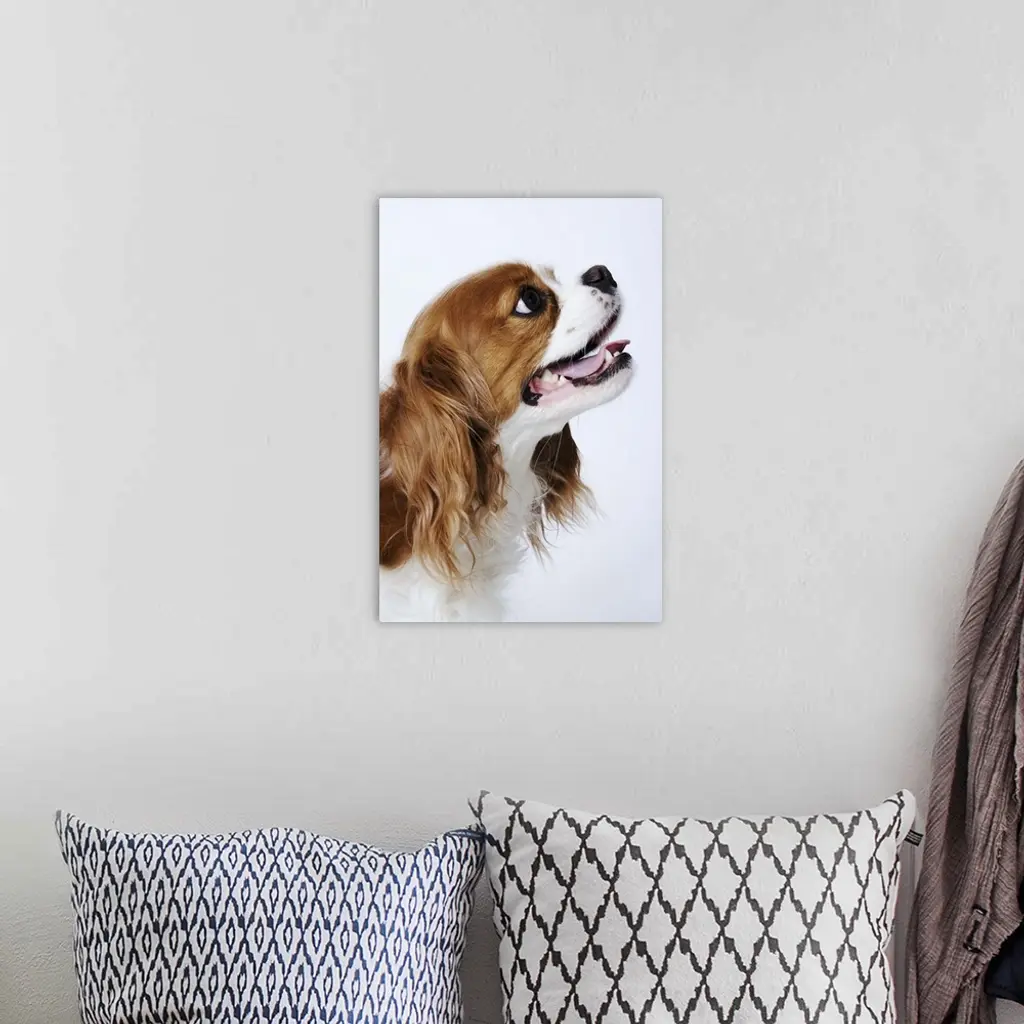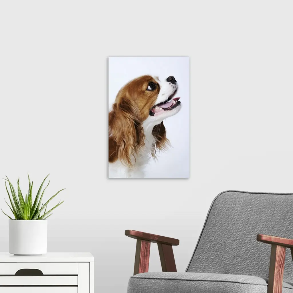 Cavalier King Charles Spaniel, side view, studio shot, close-up