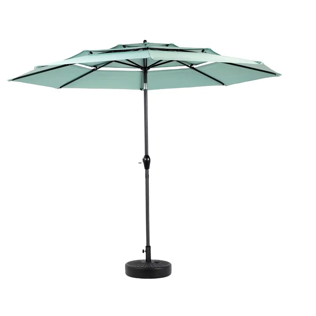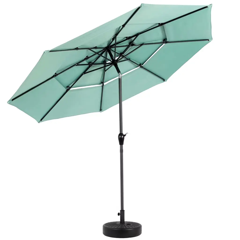 Cavinas 10 Ft 3 Tier Auto-tilt Patio Umbrella With Tilt Adjustment,outdoor Umbrella With 8 Steel Ribs For Poolside And Yard,no Base,light Green