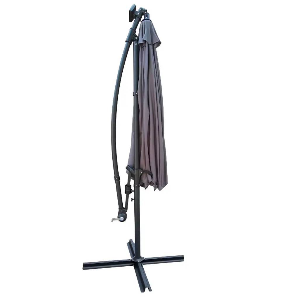 Cavinas 10 Ft Patio Umbrella With Base Deck Umbrella With Base With Night Light Cantilever Patio Umbrellas For Garden, Terrace, Medium Grey