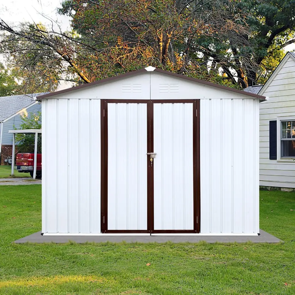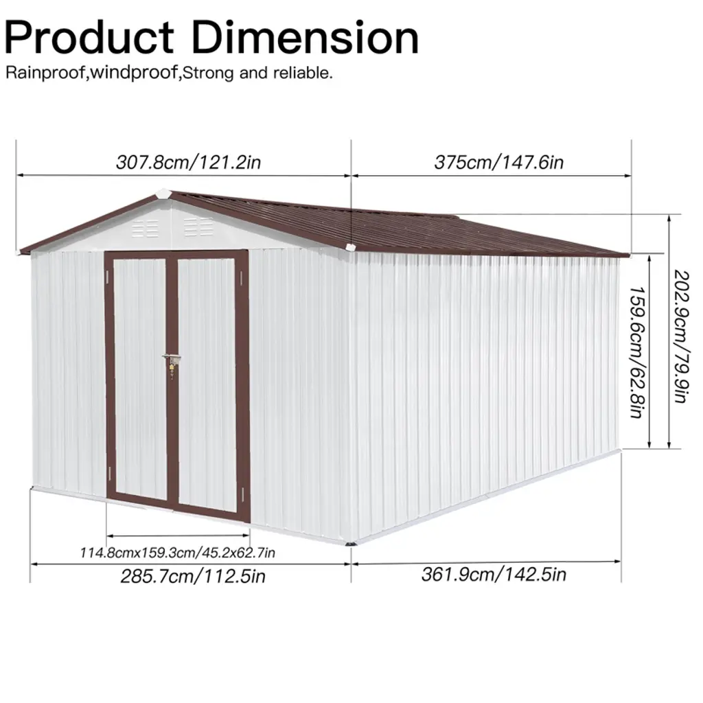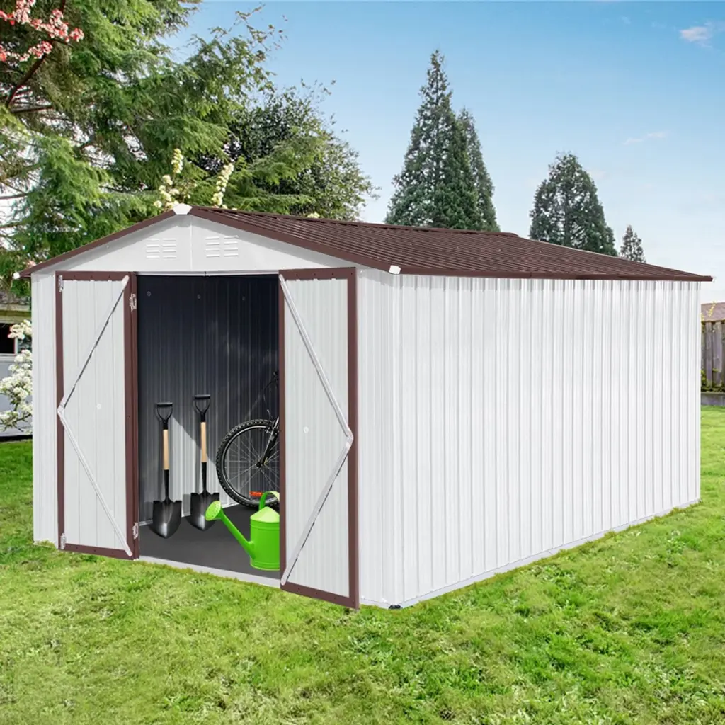 Cavinas 10ft×12ft Outdoor Storage Sheds Metal Garden Sheds With Hinged Door For Garden Tools, Durable And Weather-resistant, White
