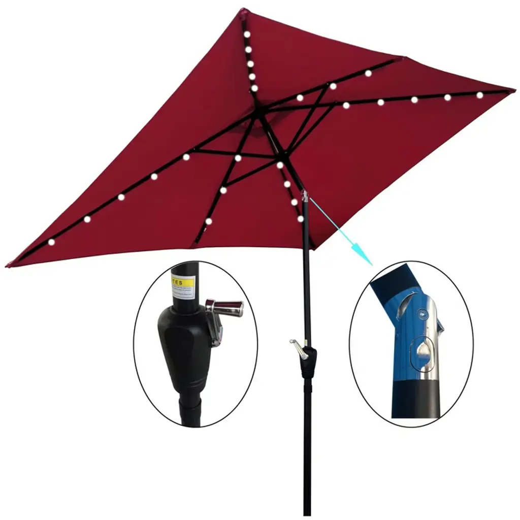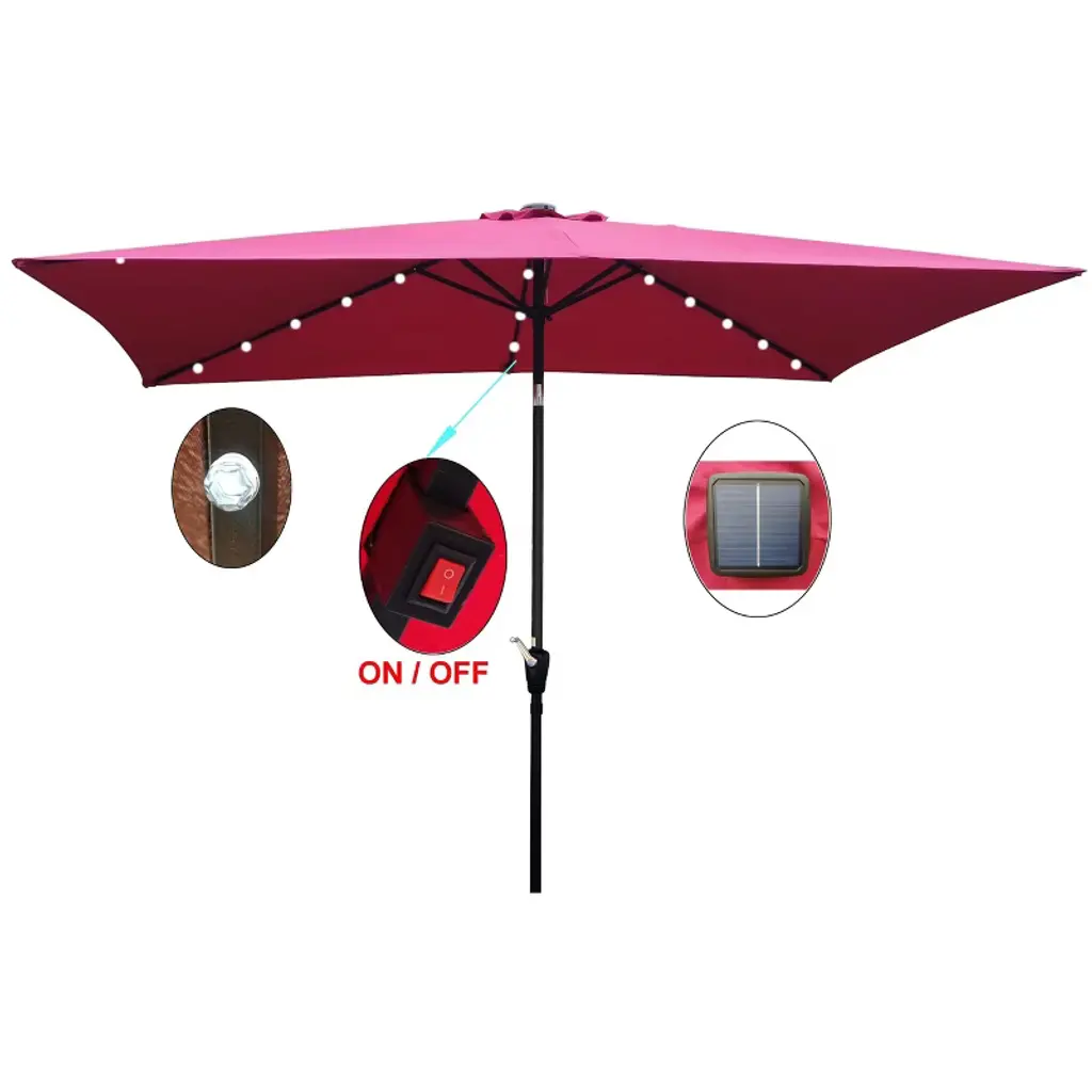 This outdoor umbrella has a spacious surface that can effectively block direct sunlight, providing you with a cool and cool place.This parasol umbrella is made of high-quality materials and forged through multiple fine processes to ensure the stability and durability of the parasol.The top of the patio umbrella is equipped with a solar panel, which does not require external power supply and wiring, and is energy-saving and convenient.This sunshades for patio can be used on home terraces and commercial outdoor areas to meet your needs in a variety of scenarios.This outdoor patio umbrella is conveniently designed to greatly shorten the installation time.