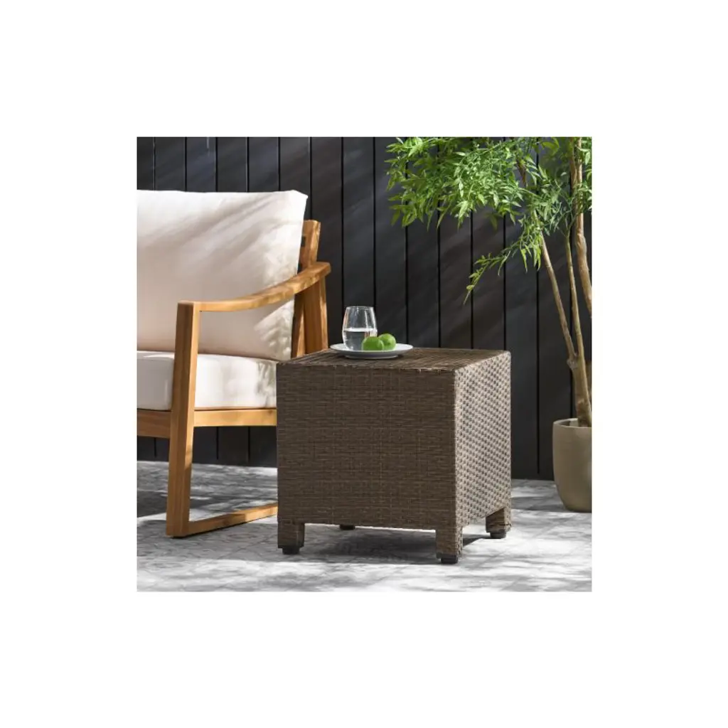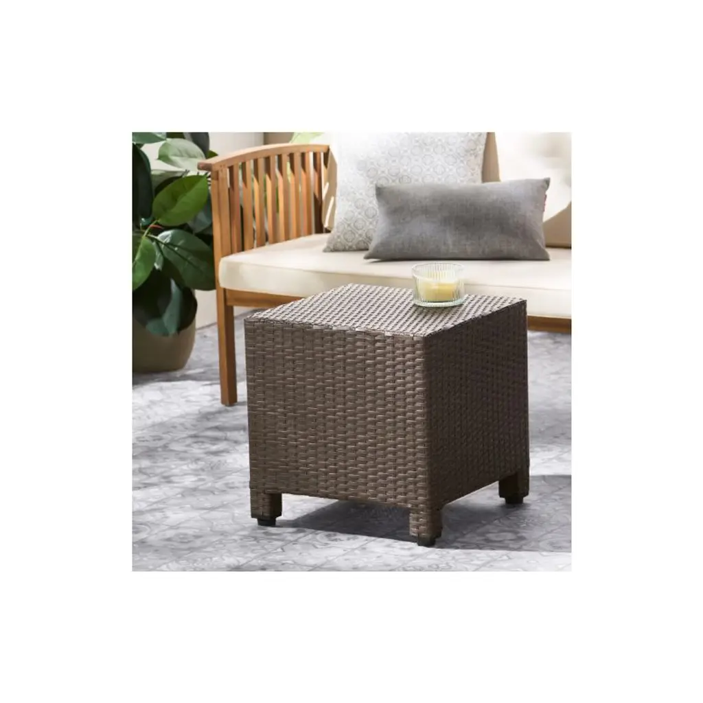 Elevate your outdoor space with this polyethylene rattan cube patio side table, blending durability and minimalist style. The long-lasting woven finish resists weather elements while offering a versatile look that complements any outdoor decor. Its clean cube shape provides a sleek, modern silhouette, perfect for holding drinks, snacks, or decor on patios, decks, or poolside areas. Measuring 18"W x 18"D x 18"H and requiring no assembly, this outdoor table arrives ready to use, instantly adding functional charm as a patio end table or accent piece to your outdoor setup.