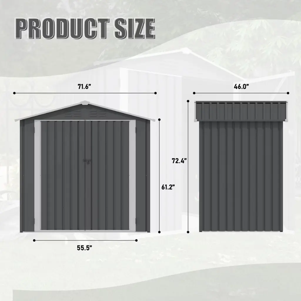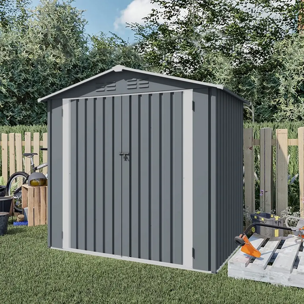 Cavinas 6 X 4 Ft Outdoor Storage Shed Large Metal Tool Sheds With Sliding Doors And Air Vent For Backyard, Gray