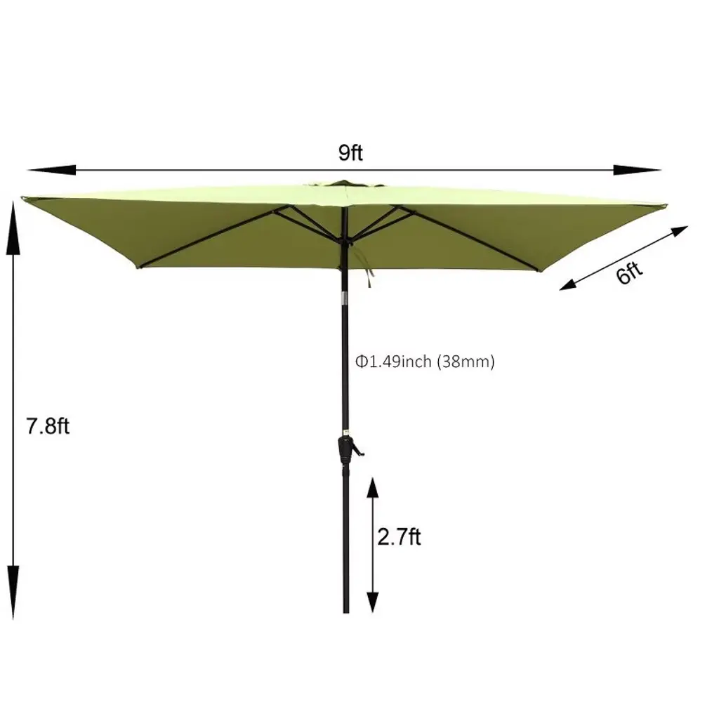 Cavinas 6 X 9 Ft Patio Umbrella With Push Button Tilt And Crank,outdoor Waterproof Umbrella For Backyard,poolside,deck,base Not Included,lime Green