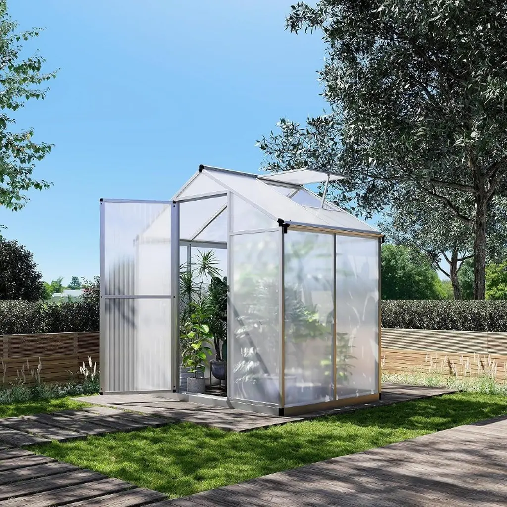 Cavinas 6*8ft Polycarbonate Greenhouse With Uv Protection Walk-in Storage Shed With Adjustable Vent Window And Lockable Hinged Door, Green