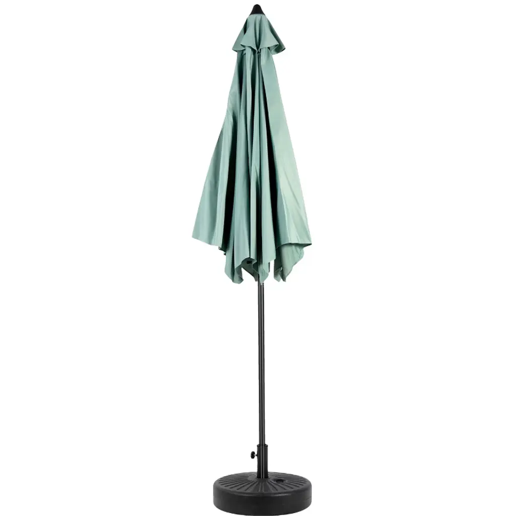 Outdoor umbrellas have various shapes and rich colors.Their unique design can add a fashionable and casual atmosphere to outdoor spaces.The outdoor umbrella has the functions of height adjustment and angle adjustment,which is convenient for users to flexibly adjust the direction of the umbrella surface according to the angle of sunlight,so as to achieve all-round sunshade and sun protection.The umbrella surface material of the outdoor umbrella is waterproofed,so that rain can slide off quickly after falling on the umbrella surface,providing people with dry shelter even on rainy days.Outdoor umbrellas are mostly made of sturdy and durable materials for the ribs and poles,which have high strength and toughness and can withstand a certain amount of wind.
