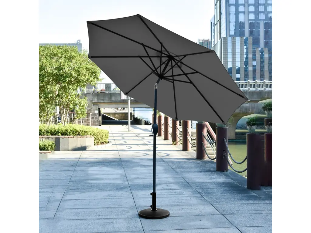 Outdoor umbrellas have various shapes and rich colors.Their unique design can add a fashionable and casual atmosphere to outdoor spaces.The outdoor umbrella has the functions of height adjustment and angle adjustment,which is convenient for users to flexibly adjust the direction of the umbrella surface according to the angle of sunlight,so as to achieve all-round sunshade and sun protection.The umbrella surface material of the outdoor umbrella is waterproofed,so that rain can slide off quickly after falling on the umbrella surface,providing people with dry shelter even on rainy days.Outdoor umbrellas are mostly made of sturdy and durable materials for the ribs and poles,which have high strength and toughness and can withstand a certain amount of wind.