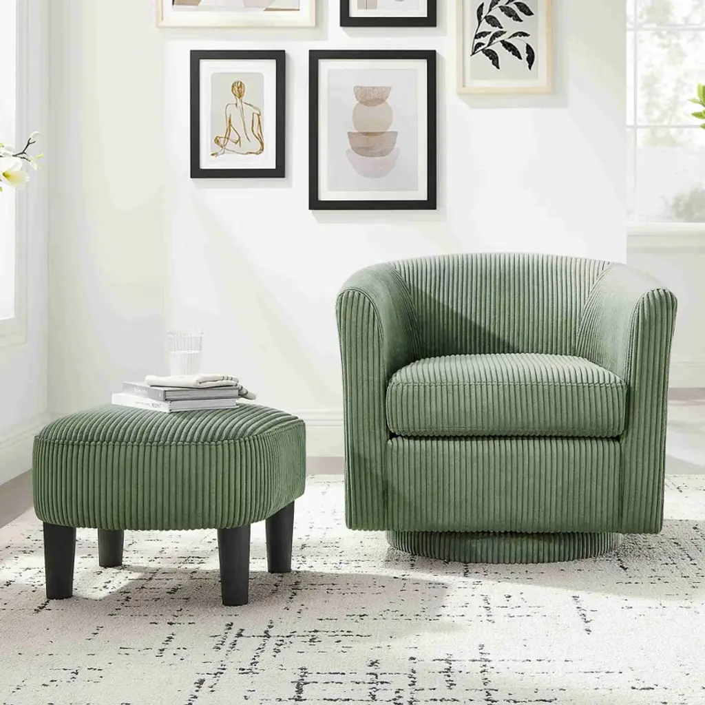 Cavinas Corduroy Fabric Swivel Accent Chair With Ottoman,modern Upholstered Swivel Arm Chairs,reading Chairs For Living Room,green