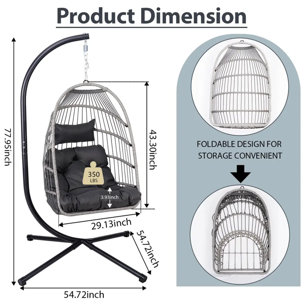 Cavinas Indoor & Outdoor Wicker Patio Egg Chairs With Cushion & Stand,hanging Swing Chairs For Garden,backyard,balcony,black
